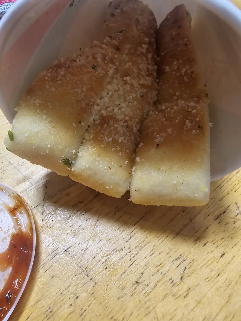 Bought some bread sticks here and found a bug in the cup of bread sticks I will not be getting any food from their