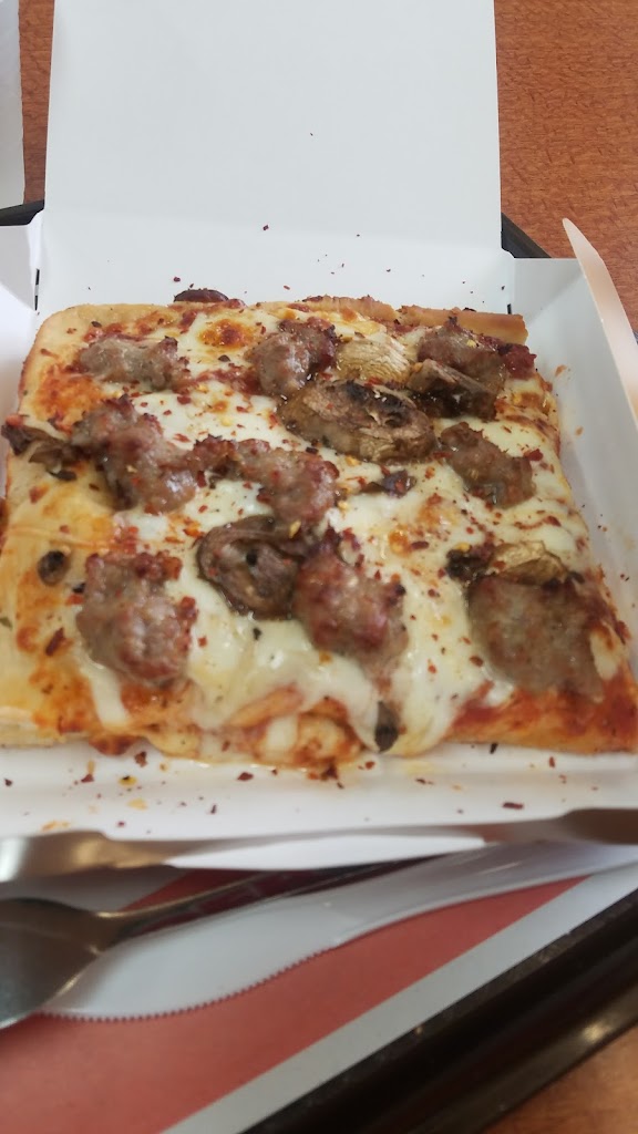 This is a highway stop location with a mini-food court that has Rocky Rococo, Cousins Subs, and A&W. I love Rocky Rococo pizza. I had a sausage and pepperoni super slice. Very delicious. The service was quick. There was ample dining tables available. The area was very clean.