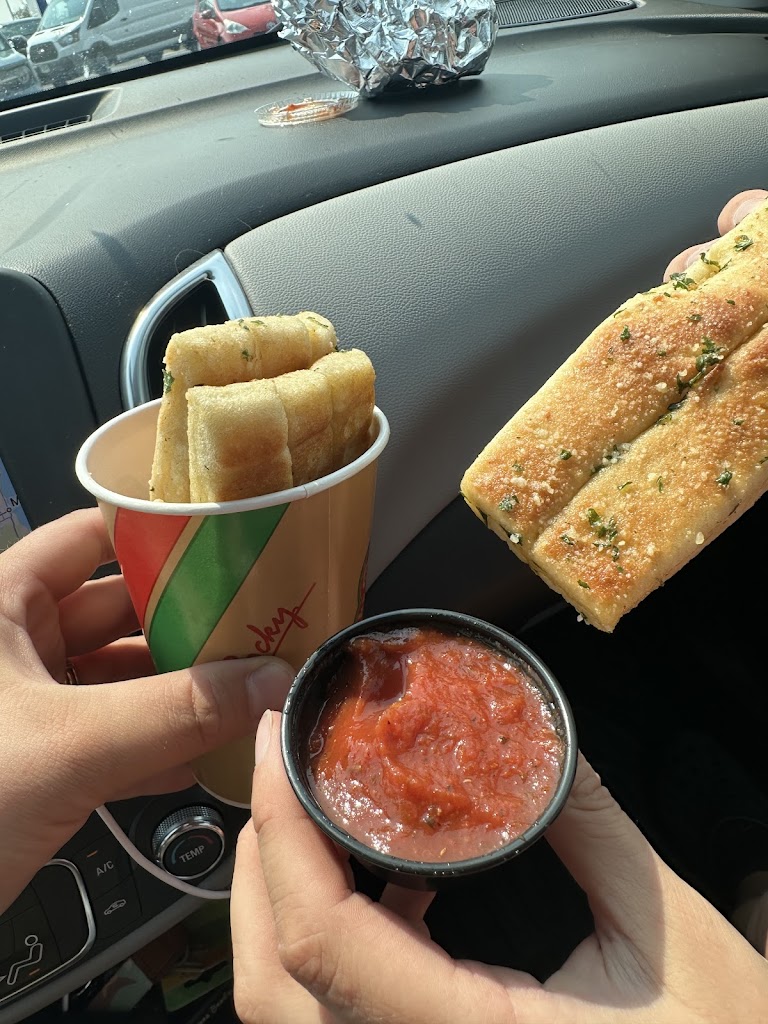 Bread sticks are hit or miss with flavor and dryness. Pizza is usually pretty good tasting.