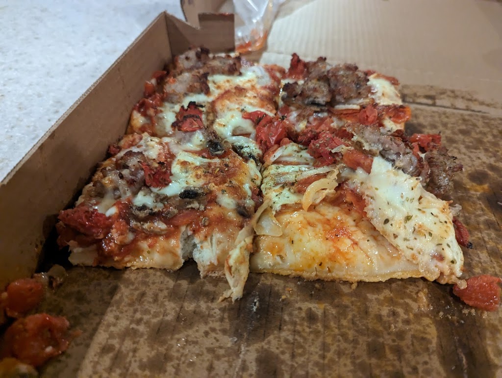 This pizza nasty 🤢🤮 the first slice was okay and then I grabbed another slice & the taste was different & it tasted sweet and had a smell to it
