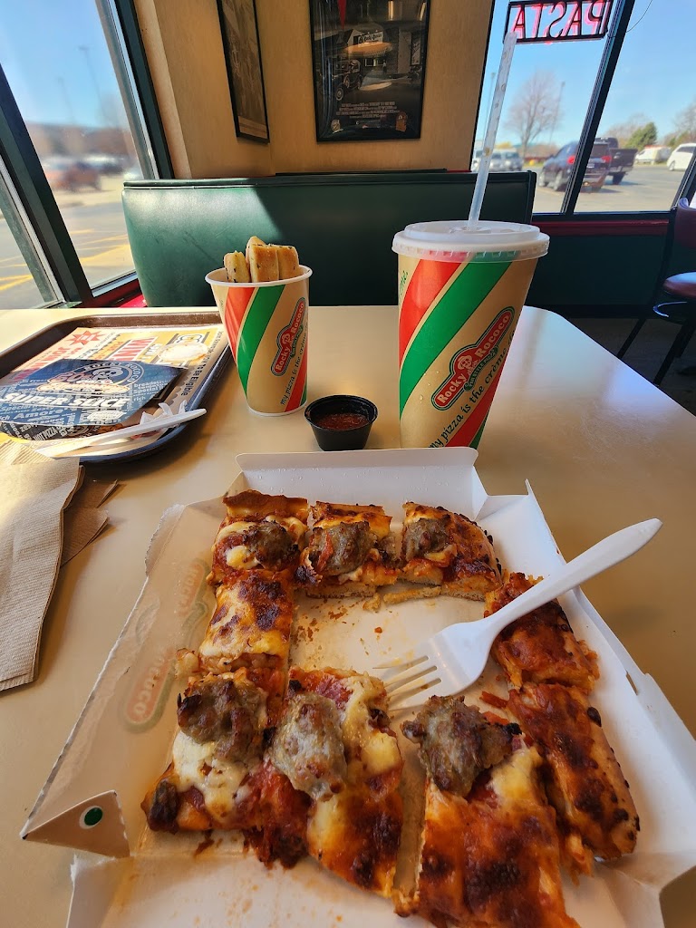 As people who love Rocky Rococo’s, this Rocky’s does it BEST. Every time we have come to this Rocky’s we have had food that tasted great and have had wonderful service. The best Rocky Rococo’s breadsticks that we have ever had were at this location. They have a drive thru which is a great feature! There is plenty of parking and indoor seating here. We highly recommend this Rocky Rococo’s.