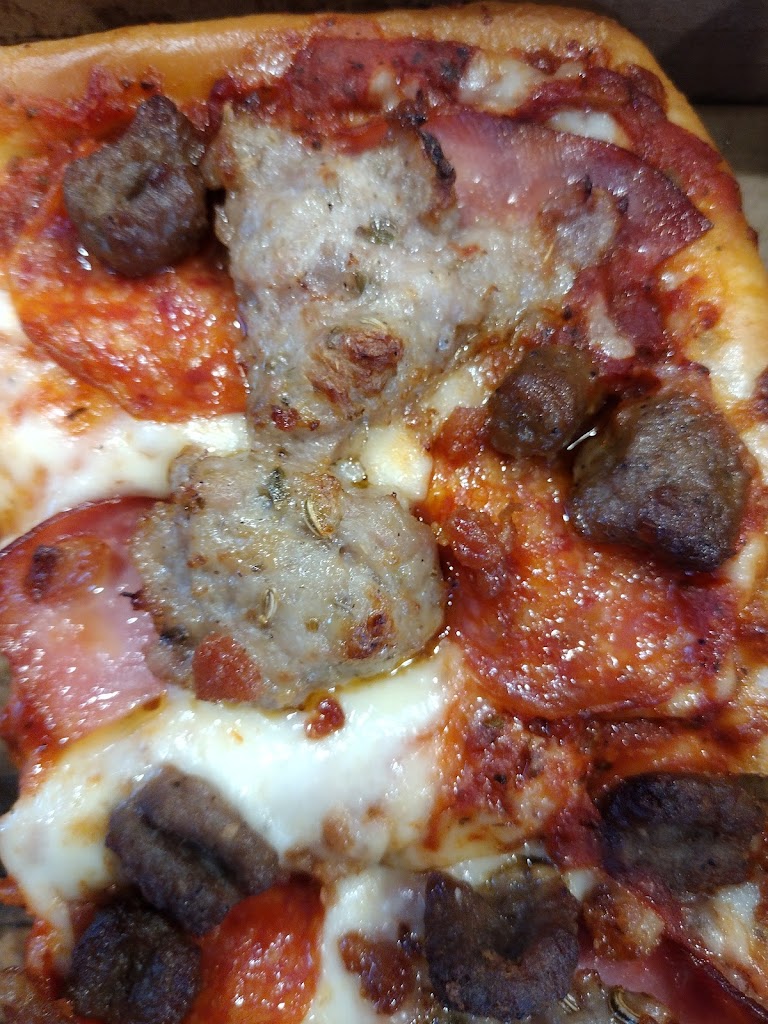 Wanted to treat my store to some pizza for a birthday and to celebrate my last day helping them so I ordered a meatworks and a The works deluxe on white (also available in wheat). the owner herself was very friendly and had a nice lovely chat with her and the food was amazing my entire team was really impressed and a lot of them was their first time having it and definitely going to be a team favorite for future treats. Check out the size of those sausages, so yummy! Definitely would recommend!