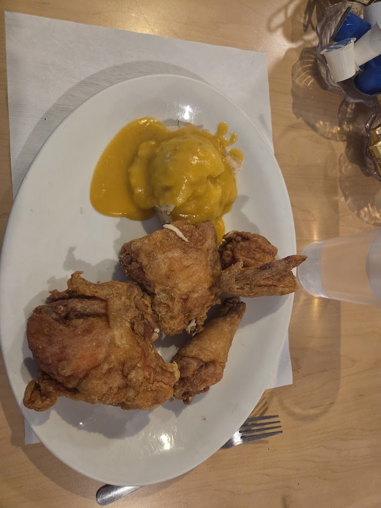 All I had was the chicken dinner. Chicken was excellent. Potatoes were fine. There wasn't any veggie, though. Coffee was perfect. Service was excellent. Place is sort of hidden behind other buildings, otherwise I would have stopped here 12 years ago.