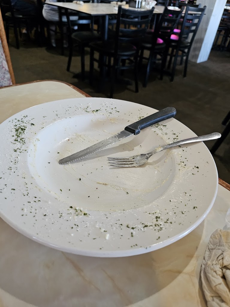 Had dinner. I ordered a pasta special. Fettuccine with tiger shrimp, mushrooms, kalamata olives, spinach and a vodka sauce. The special comes with a salad or soup. I had both, chicken dumpling soup, french and blue cheese dressings on the salad. The shrimp was forgotten on the pasta. I mentioned it to the waitress and she went in the kitchen and had the chef make up the shrimp. She brought it out in a separate plate. I added the shrimp to the pasta dish. I had water and lemonade to drink. The waitress adjusted the bill because the chef forgot the shrimp. Everything tasted very good. I was well pleased with the service and the food. I will order this dish again. No photos this time.