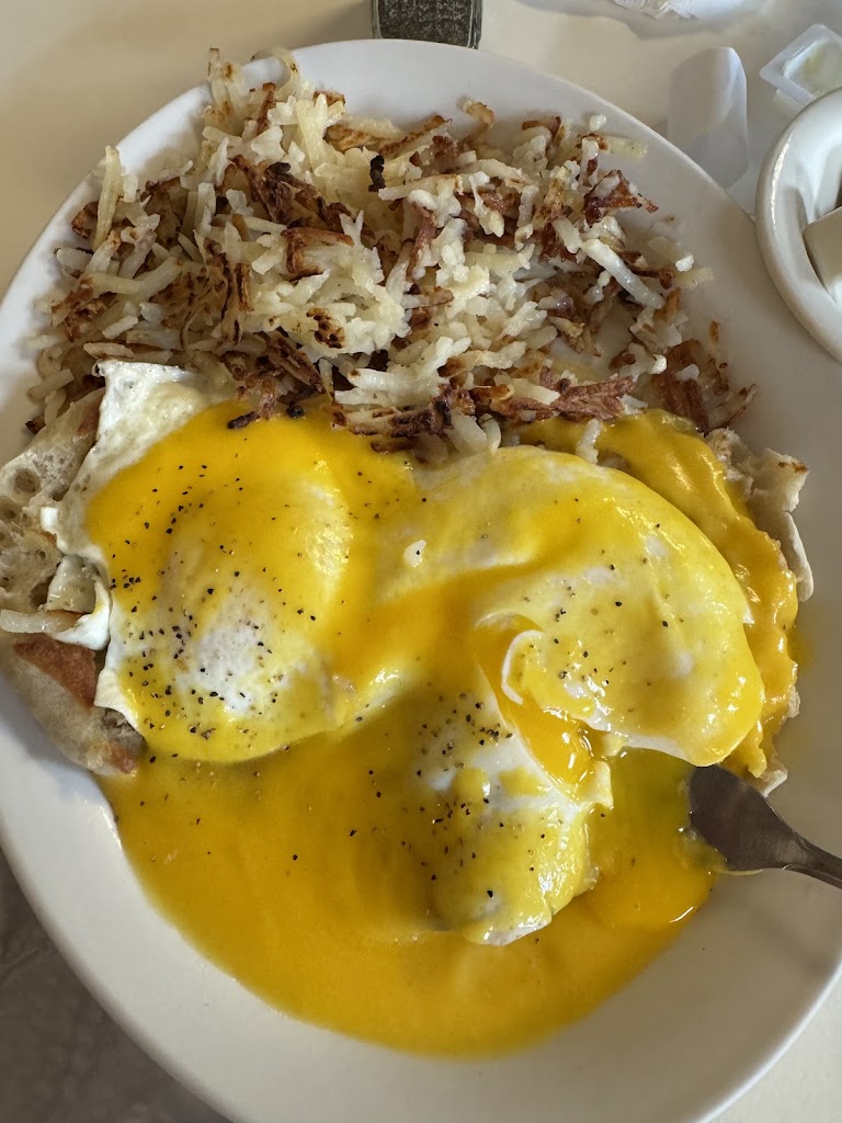 Delicious food and a nice, homey atmosphere. I tried the eggs Benedict and loved it. Great sauce! I had a very nice server, as well. Check out the little miniature recreation of the Cafe on display inside 😀 there's plenty of room for small groups and couple's booths, and a small, bar style setup for people who enjoy rubbing elbows or chatting with others a little bit, too. Overall lovely place