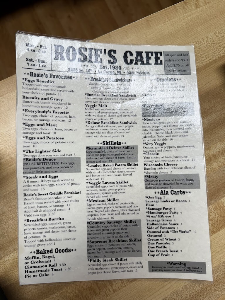Open for over 40 years, Rosie's Cafe has served the best breakfast and lunch in La Crosse.