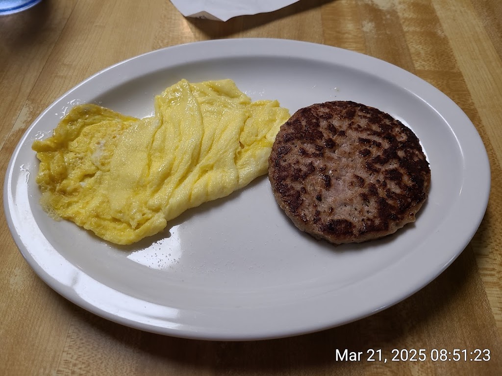 Food was good, Denver omlet was a little undone, good hash browns, toast. Cook knew how to make basted eggs. Service was excellent, surroundings are plain but homey. A very good place 4.5