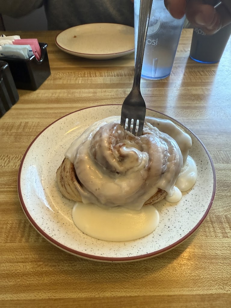 Rosie's is a small, traditional diner. We both shared a cinnamon roll which was nicely sweet and the dough was very soft. This was very good and the best thing we had - 5/5 stars for that hands down. We also ordered "The Deuce" which consists of 2 eggs, 2 bacon or sausage, 2 pancakes, and toast. Respectfully, all of those were very average and didn't deliver anything special. The bacon was crispy, the pancakes slightly undercooked, and my sunny side up eggs had nice big yolks. The place is noticeably small, with several would-be patrons deciding to leave because there was no available tables. Also, there's a table in the back that is specifically for parties of 5 only....I don't believe there's a sign on that table because numerous groups of 3-4 people tried sitting there, only to be promptly moved by a server (or just ended up leaving the restaurant). They have a patio but it wasn't open due to forecasted rain. The patio is dog friendly.