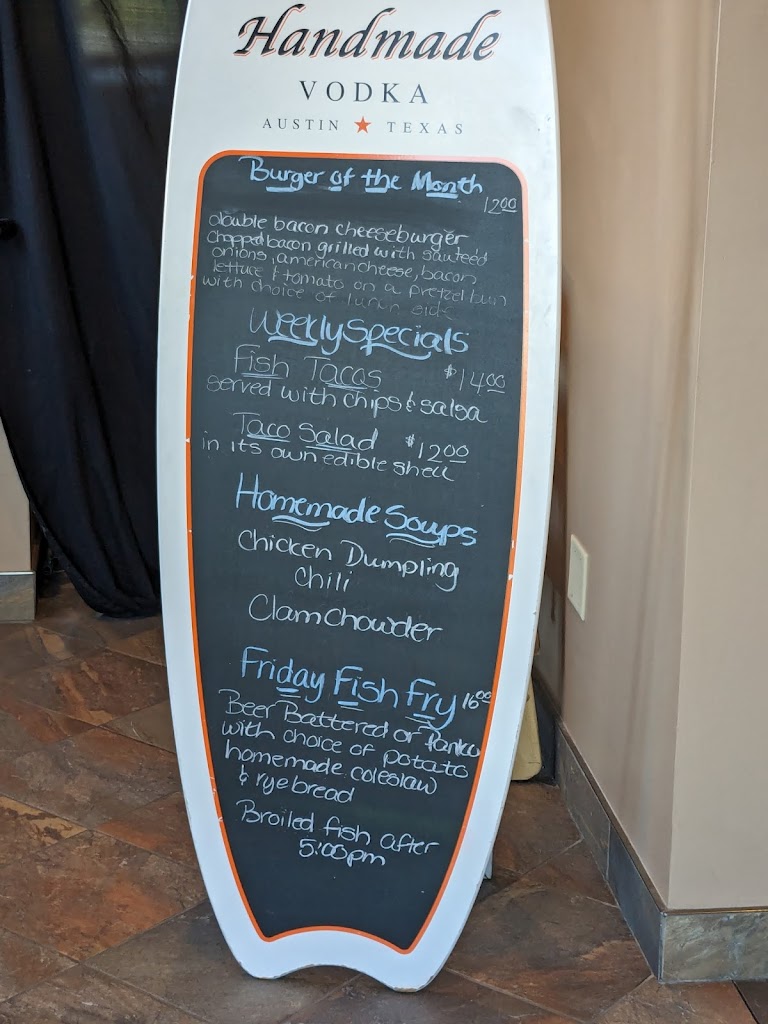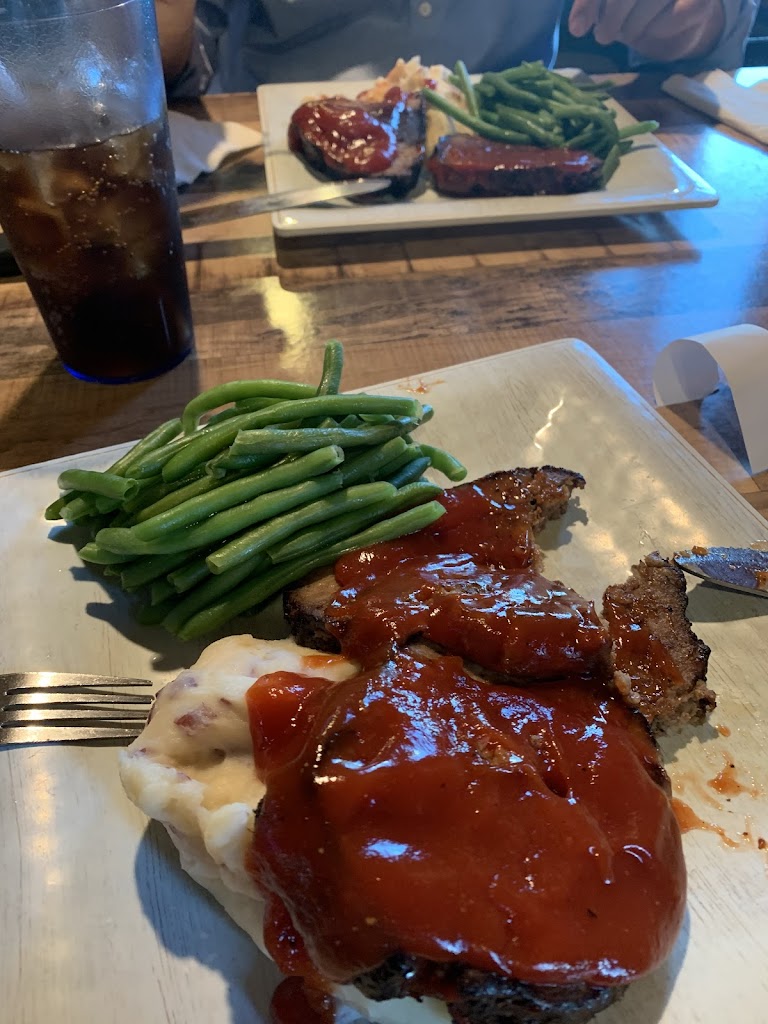 Had to get a bite to eat was close to the highway we got their meatloaf dinner $13 not bad pretty big portions served with steamed green beans, mashed potatoes and 2 good size squares of meatloaf 😋 place is mainly bar atmosphere place was pretty empty for a Wednesday evening meal. Friendly service.