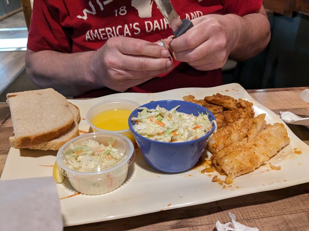 Three of the four in our party discussed that our meals had absolutely no flavor. It appears that the cook forgot to put any seasoning/ spices on our:dishes. Waitress came by our table on a very infrequent basis. She was friendly.