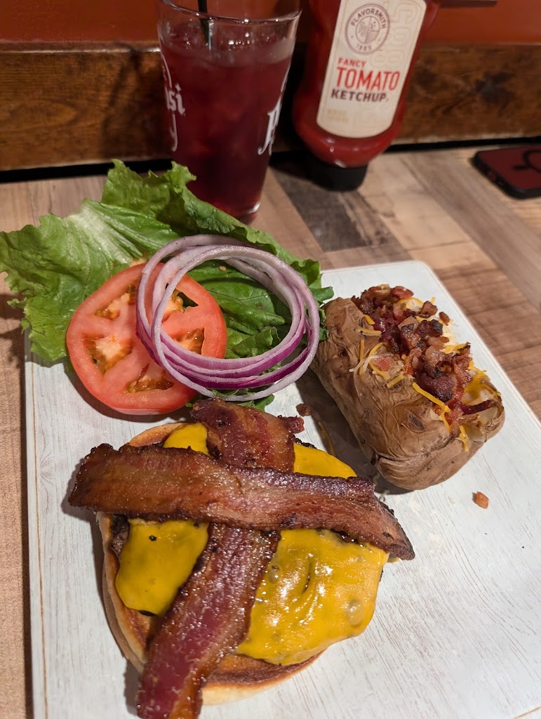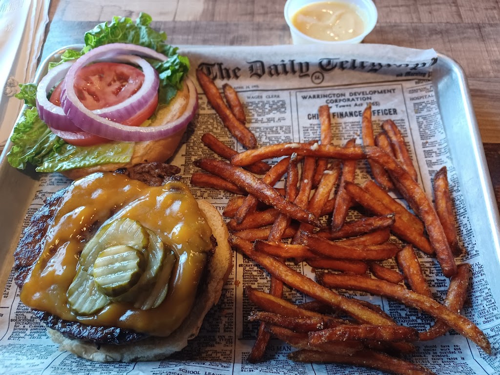 Food was great. I ordered a smash burger with bacon , peanut butter and jelly. Yrs, it sounds weird but I was really delicious. I was there with a party of 8. Everyone's food was perfect. The waitress we had was friendly and personable. Atmospheres was quiet but starting to become lively. Enjoyed myself. Will go back again.