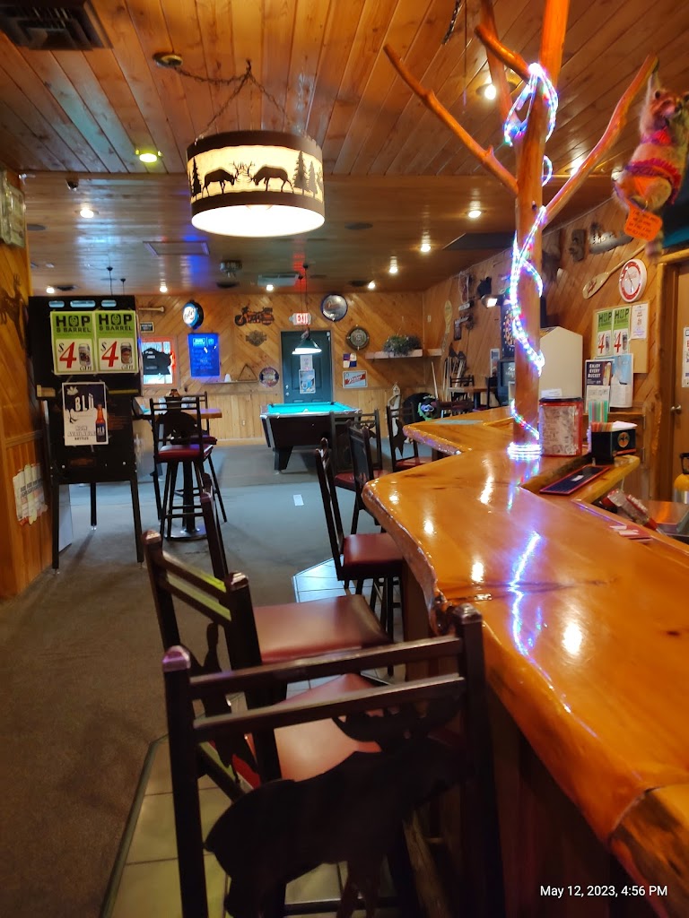 It's a cabin like atmosphere clean bathrooms long bar, pool,darts, kinda pricey on the mixed drink but it was strong so give or take but it was clean and people were friendly. We rode in and stopped for a warm up and got just that. :)