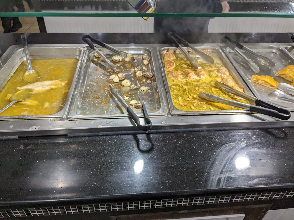 It’s a quiet spot not many people. Food was extremely old some of it not even warm. Even the rice and green beans were crunchy. The best food I ate there was the potato wedges which were still full so I assume added recently. The staff were great at grabbing empty plates and refilling water but the food wasn’t even worth $15. It was overcooked/burnt throwaway table scraps.