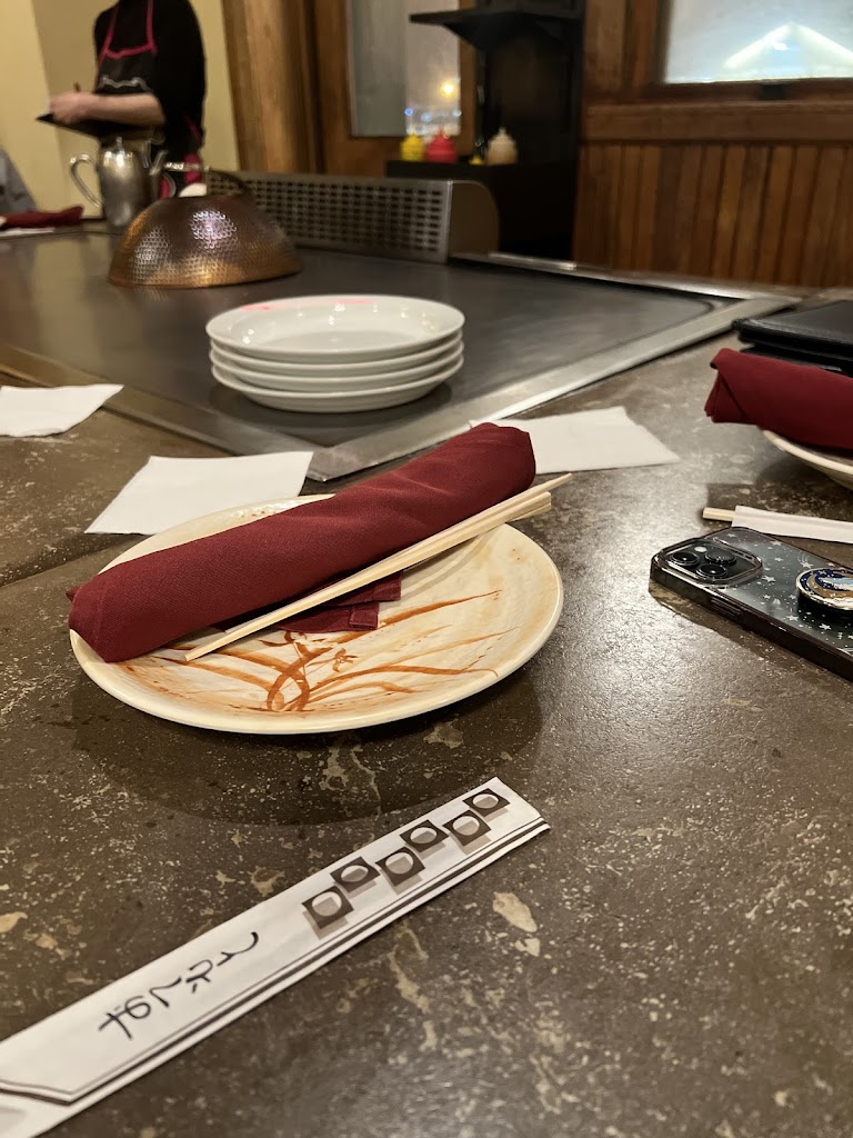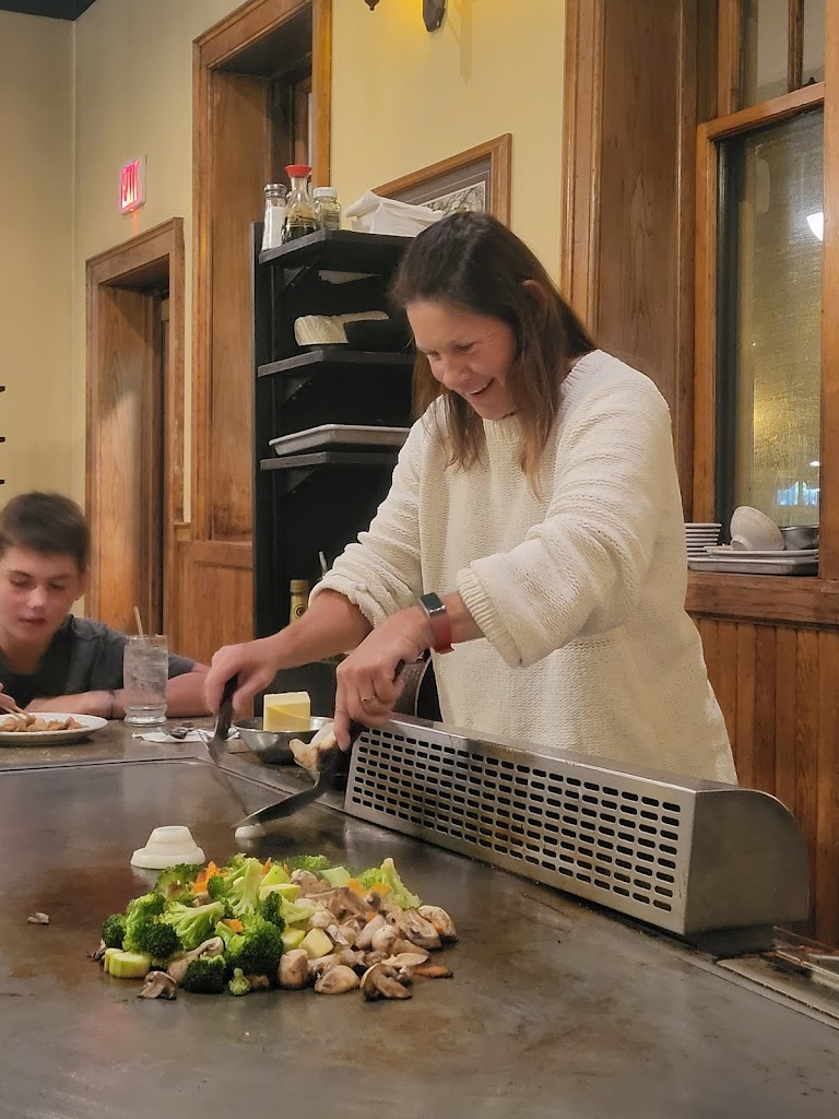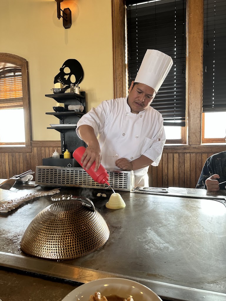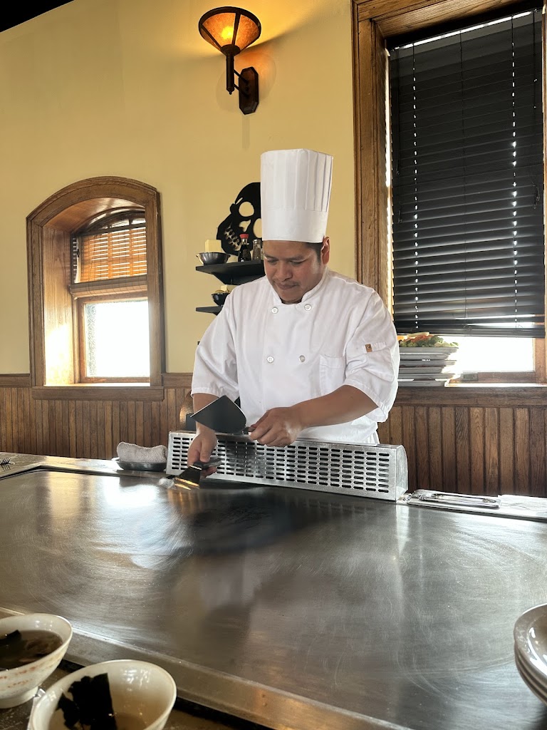 The hibachi attendant was kind, funny and seemed to enjoy his work