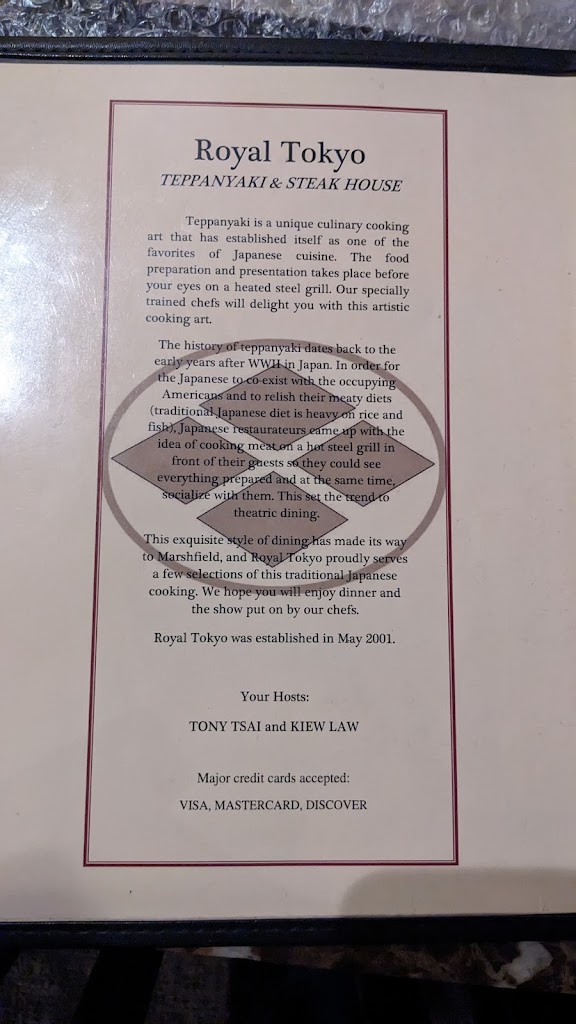 Celebrated our wedding anniversary with a group of 10 people. Royal Tokyo was so accommodating and welcoming. Food was amazing and delicious!