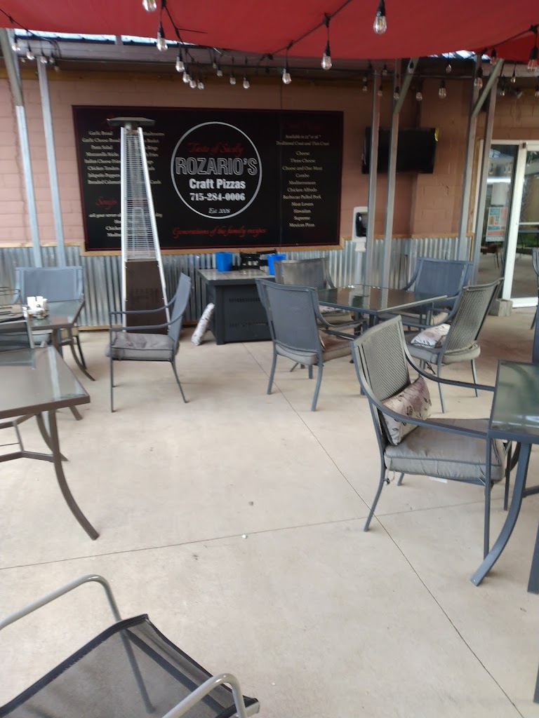 Patio is very nice and includes a mix of table types from picnic to fire pit. Pizza was excellent. Local music artist added a nice ambiance.