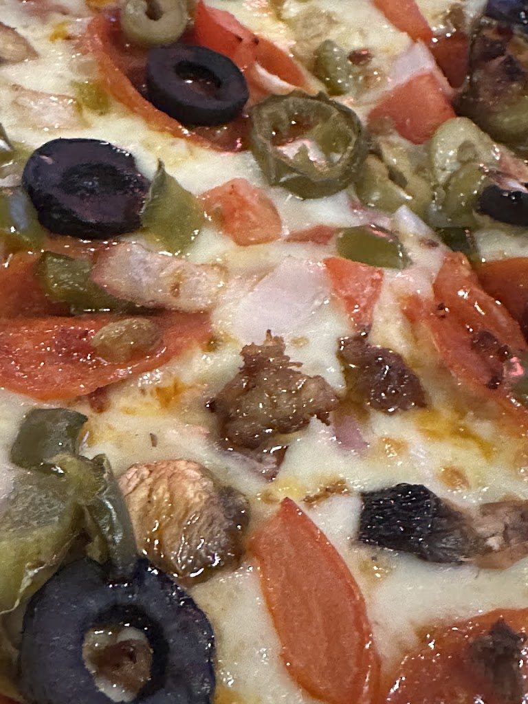 I love pizza. But not this pizza! Burned on top and crust was under done. Hardly any sauce and most toppings were unrecognizable. Sausage was black and tasteless.