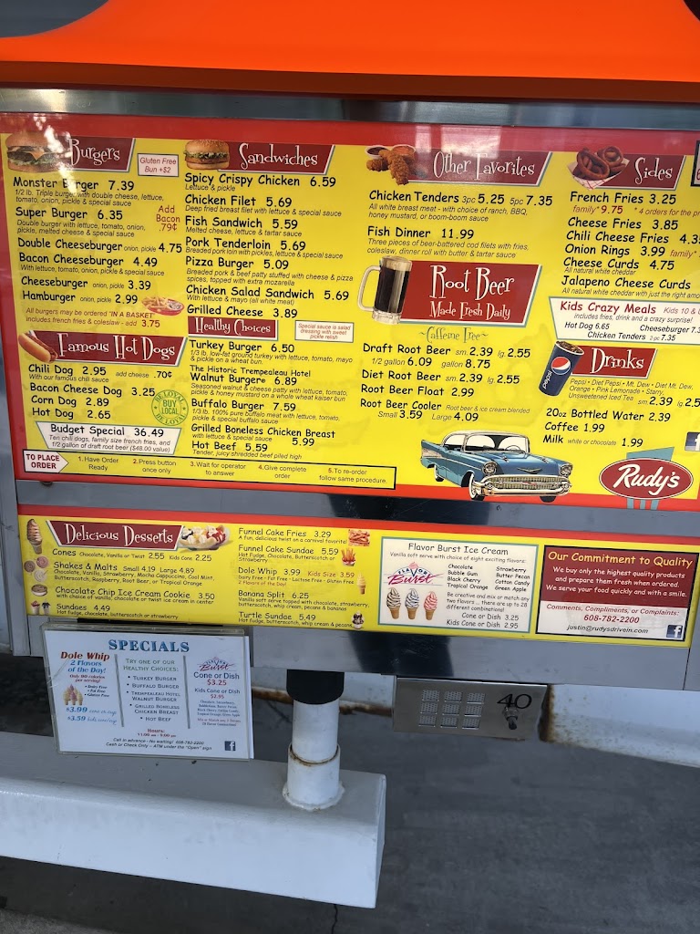 The menu hits all the right notes: crispy chicken tenders, juicy Super Burgers, and cheese curds that are perfectly golden. The root beer float is a must—cold, creamy, and served with a smile. Prices are fair, portions are generous, and the food consistently hits the spot. Whether you're grabbing lunch with friends or treating the family to a laid-back dinner, Rudy’s makes it easy to relax and enjoy.