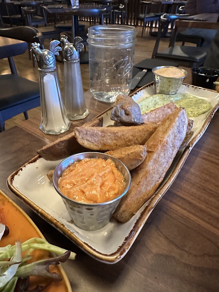 Serving portions that small for $20-30 (avg) in this area is a business destined to close soon. For most people, a single chicken breast with a small side is not enough, even paired with a $15-20 appetizer (a few bites of bread with sauce). So overall, our party paid ~$160 (tip included) for 2 alcoholic drinks, 1 beer, 1 soda, 8 tiny pieces of bread with sauce, 3 chicken breasts, a turkey slider, and some sub-par potatoes. The margins must be gigantic here, this would honestly cost ~$25-35 to make at home.
