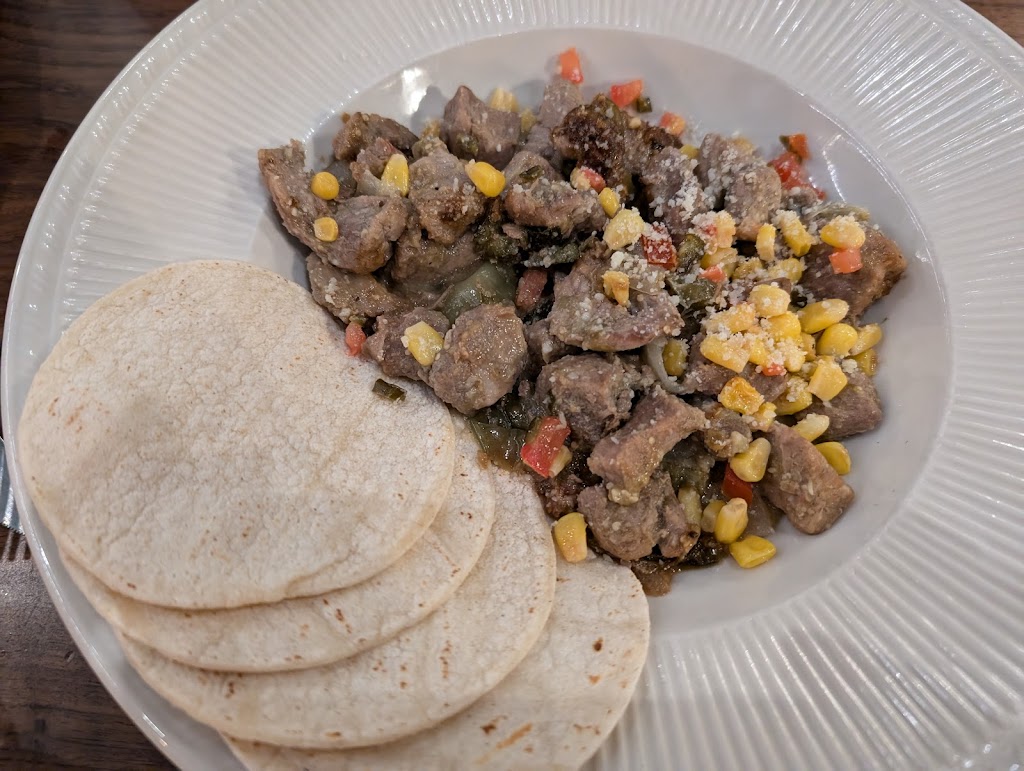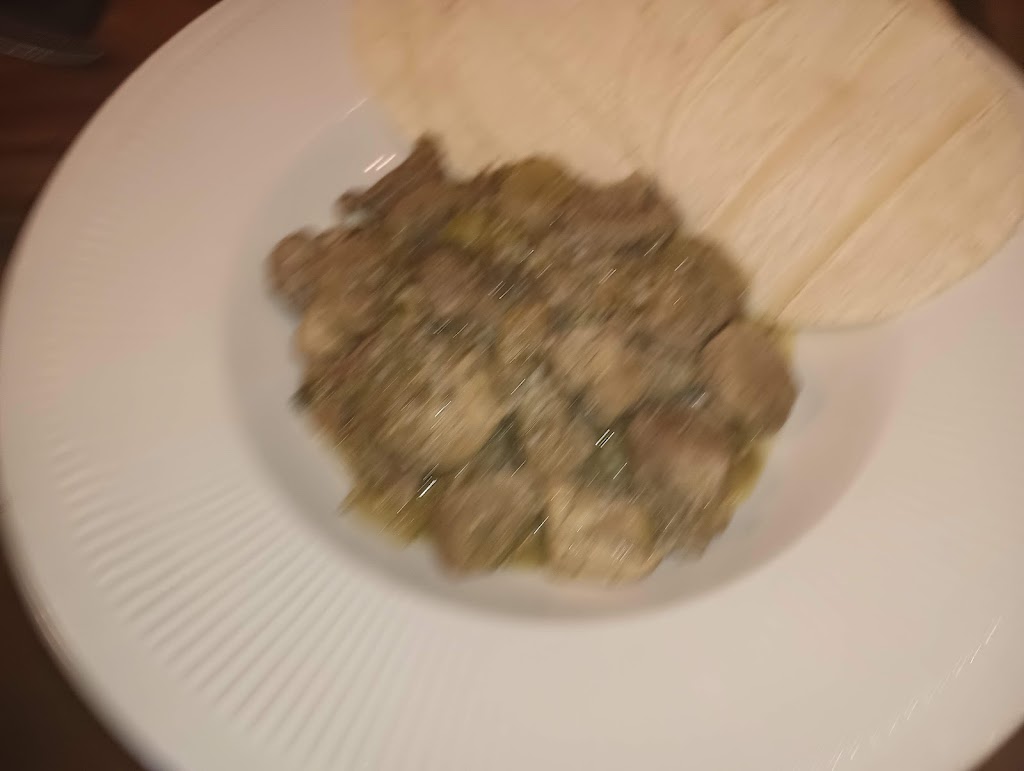 My husband got the so-called Pork Verde. Please see attached picture of how unappetizing this dish was presented-it looked like something I might find after my dog got sick. Huge chunks of tough stew meat in a bowl with flavorless green sauce that I wouldn't even feed to said dog. And the tortillas...you'd think they could at least get those right...no.