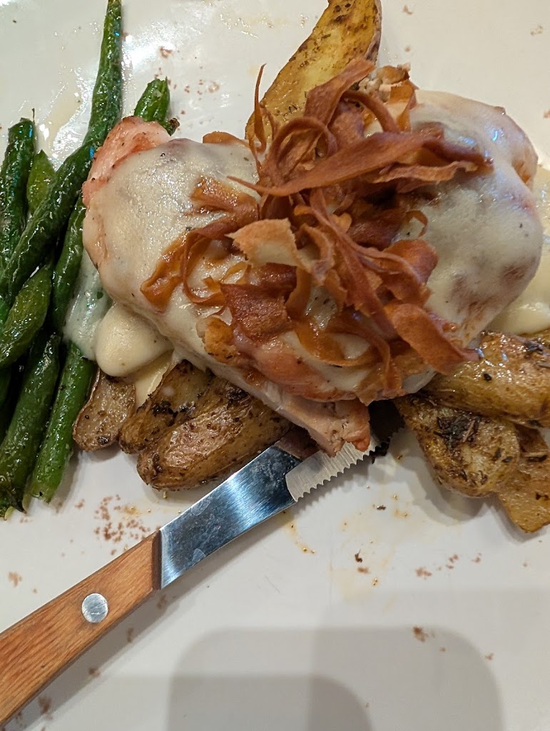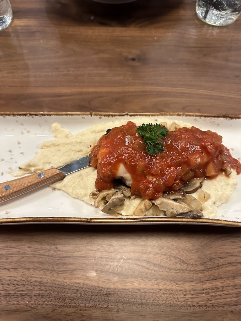 This is when we started to figure out how things were about to go for dinner. There were a few issues- 1 member of our party ordered the Pollo en Crema- it was good, but very small (a very small chicken breast with sauce for $25). Potato casserole was tasteless (all 4 members agreed). 2nd member ordered the Piccata... not sure if there is an incorrect description, or if there was a serious mistake, but it was not a piccata. It was a relatively large, flattened, breaded piece of chicken (to their credit, it would've been one of the best chicken patties/flattened chicken tenders I've tasted) with a small dixie cup of melted margarine on the side. There was no lemon or wine flavor in the slightest. Maybe it had separated and we received the top? That was paired with mashed potatoes, which were decent. The third member of our party had the chicken chasseur, which was everyone's least favorite. Tomato sauce on top was unpleasantly sweet and lacked in real flavor, mushrooms under-seasoned, serving size was a very small chicken breast, casserole was bland. The last member of our party had the turkey burger on english muffins- claimed to be good, but was gone after a few (honestly, 4-5) bites. The patty was the same diameter as the english muffin- aka a slider for $16.