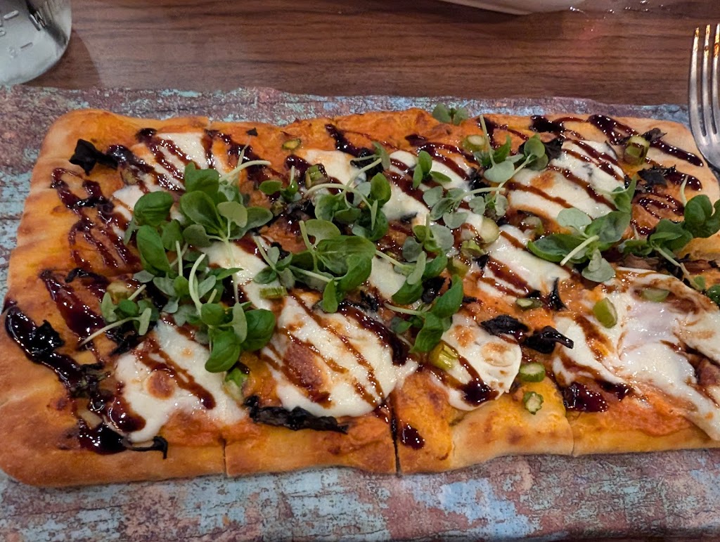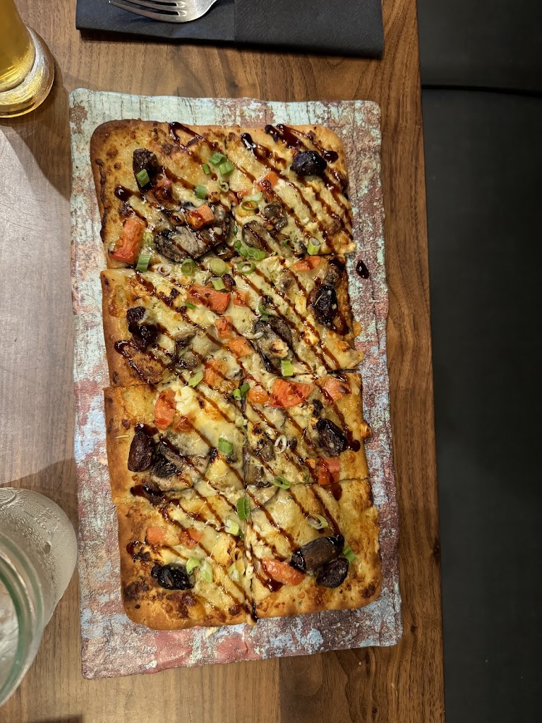 I got the mushroom flatbread with bechamel and asparagus. Someone PLEASE find the mushrooms and asparagus! The mushrooms were dried, no problem, but so small you can't even find them in the balsamic glaze. Maybe one tiny piece to each slice. And the asparagus was literally sliced so thin, what's the freaking point?!? How do you advertise this with mushroom and asparagus when you can't even see them, let alone taste them in the pool of bechamel.