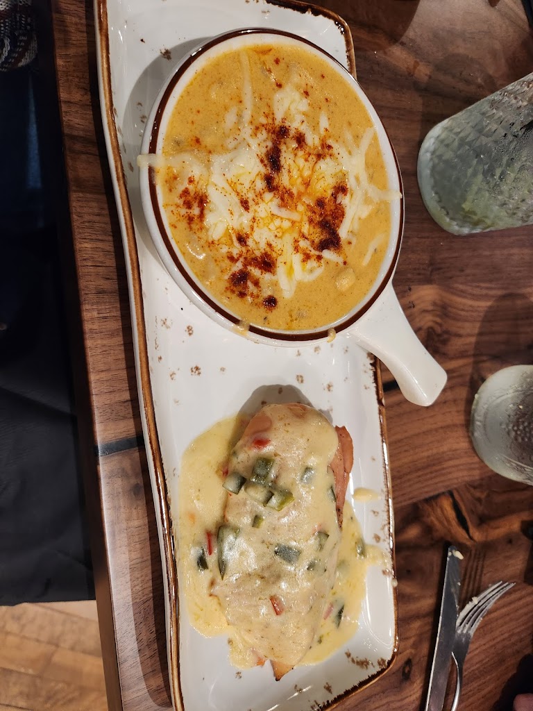 Atmosphere is great, easily the nicest atmosphere in Neenah/Menash downtown area. Food was disappointing. Pollo en Crema wasn’t good. The chicken was dry as a bone and the seared exterior was inedible. Sauce was salty and the peppers were minced. Wife’s chicken tenders were “alright.”