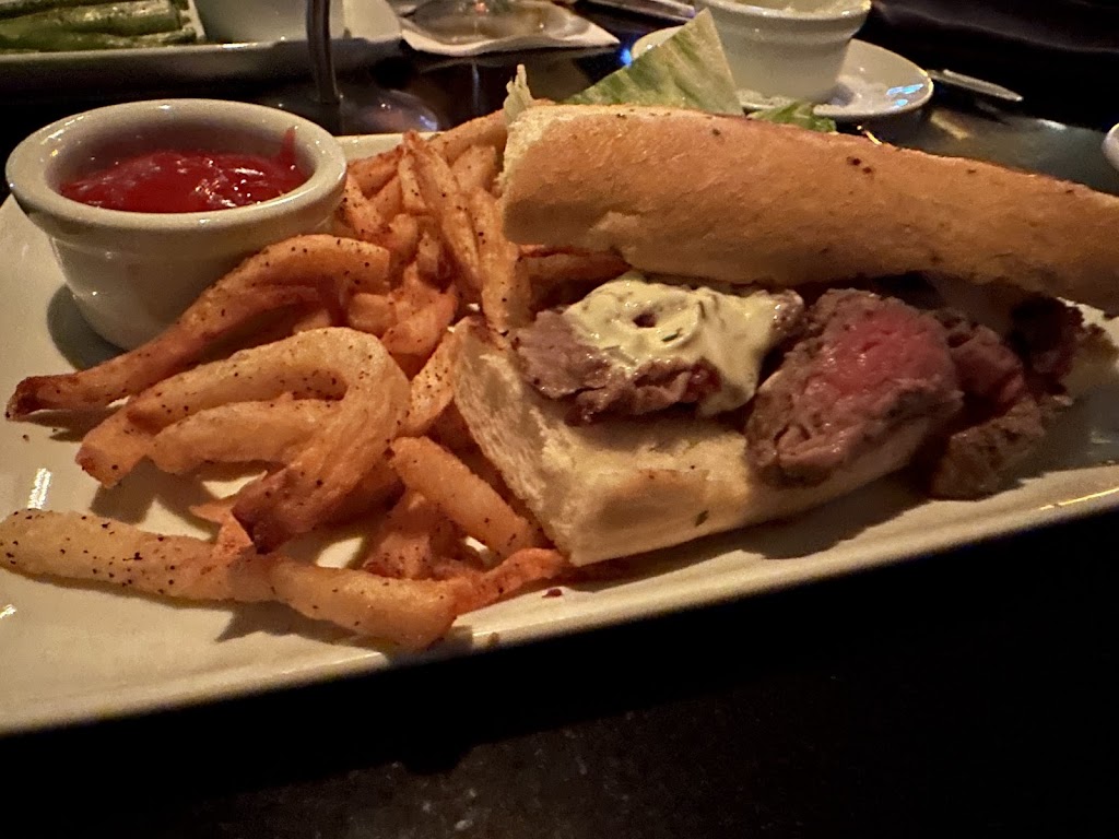 generous slices of tenderloin finished with house-made béarnaise sauce and served on a fresh-baked roll with hand-cut seasoned fries.