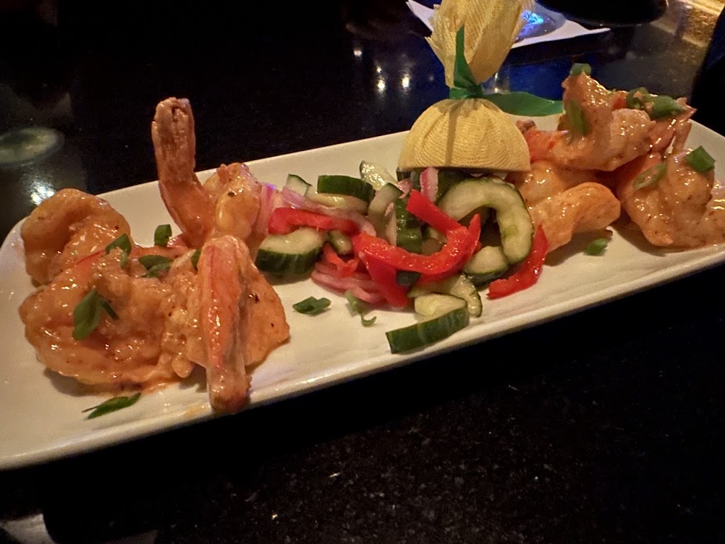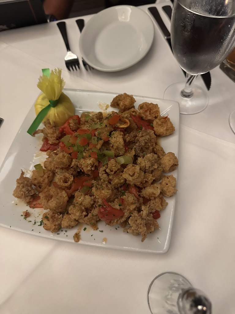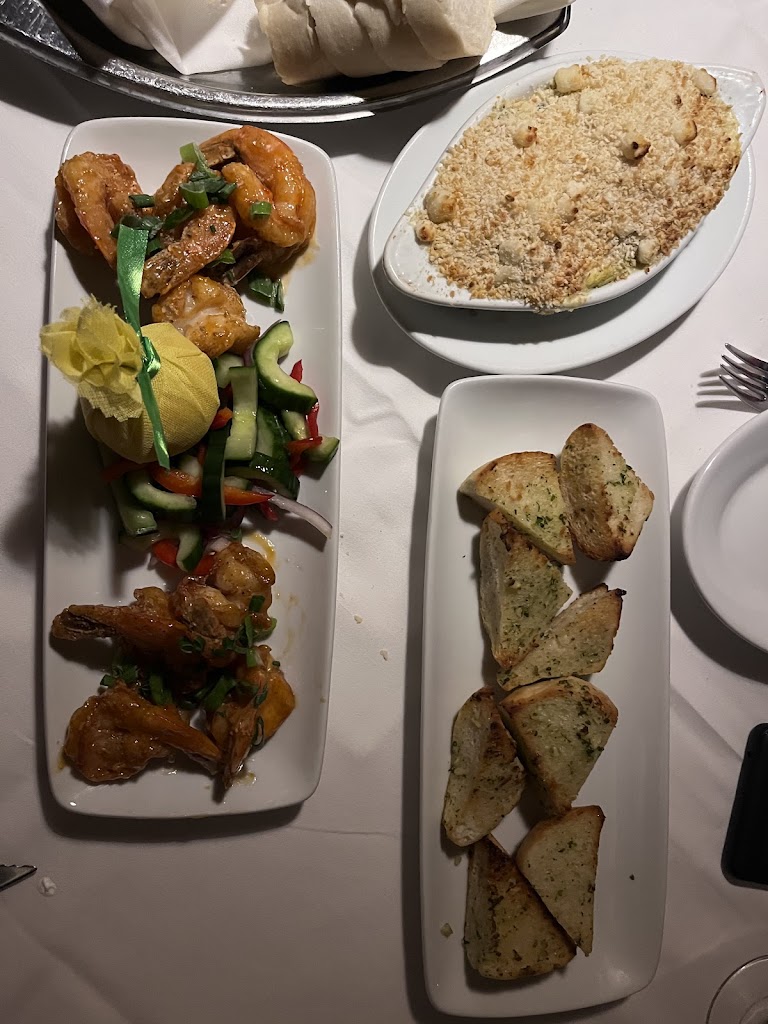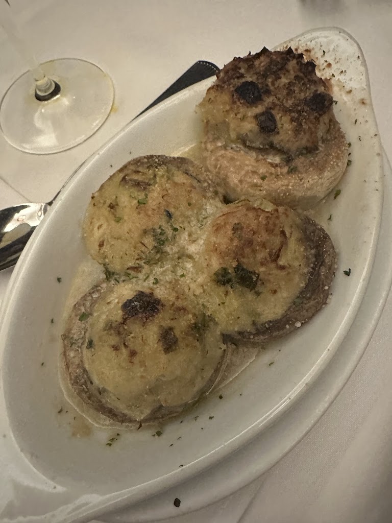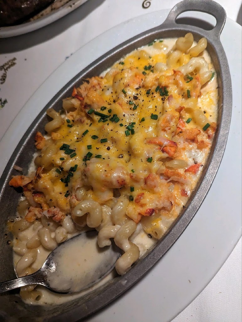 Our meal was a culinary journey, starting with an impressive selection of appetizers that set the tone for the evening. We began with Calamari, lightly fried and served with a sweet and spicy Asian chili sauce, which was a perfect balance of textures and flavors. The Spicy Shrimp, lightly fried and paired with a tangy cucumber salad, added a delightful kick, while the Stuffed Mushrooms, filled with crabmeat and seasoned with Romano cheese, were rich and savory. The Lob Mac/Cheese stood out as a standout, with its creamy, indulgent texture and rich lobster flavor, making it a highlight of the starters. We also enjoyed Roasted Corn and Mashed Potatoes as sides, which complemented the meal with their fresh, hearty notes.