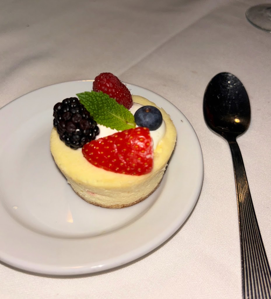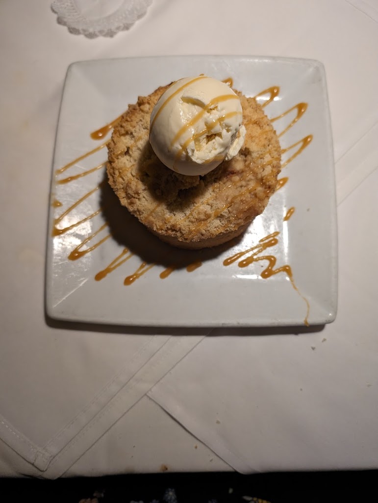 We did the three course trio, which included a thick cut sirloin. we had both ordered medium b/c we can both tolerate medium rare or medium well. the flavor was great, and the edges were cooked well, but the center was raw and chewy. My suggestion would be not to offer thick cut steaks, because that was the only downside of the visit. Staff was friendly and around often to refill drinks/bread. The caramel apple cheesecake was mouthwateringly good.