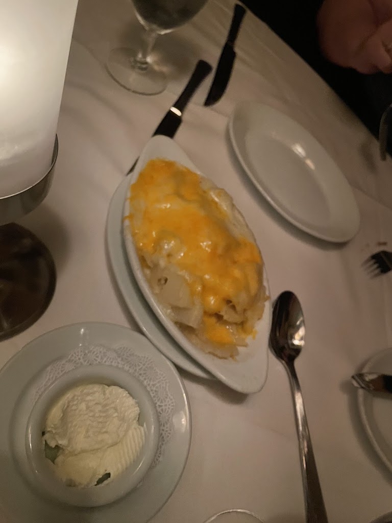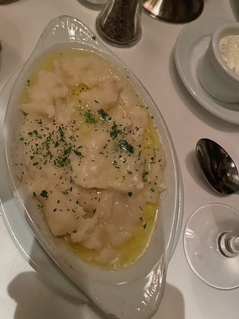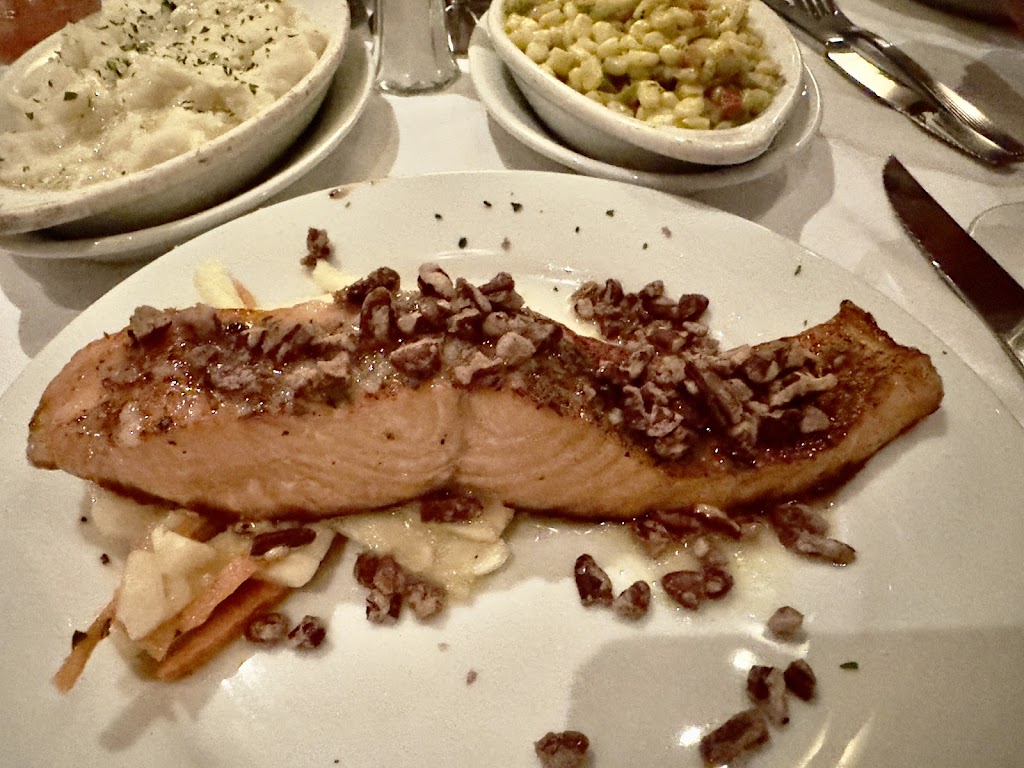 Moving to the main courses, we indulged in a variety of dishes that showcased the steakhouse’s commitment to quality. The Chefs Fish, ordered in two servings, was cooked to perfection, with a delicate flavor that highlighted the freshness of the ingredients. The 16oz Ribeye was tender and juicy, with a beautiful char that locked in its rich, beefy taste, while the Bone In Filet offered a luxurious, melt-in-your-mouth experience. These dishes were served sizzling on 500-degree plates, a signature touch that added to the visual and sensory appeal. The sides, such as the Roasted Corn with its smoky sweetness and the creamy Mashed Potatoes, were the perfect accompaniments, ensuring every bite was balanced and satisfying.