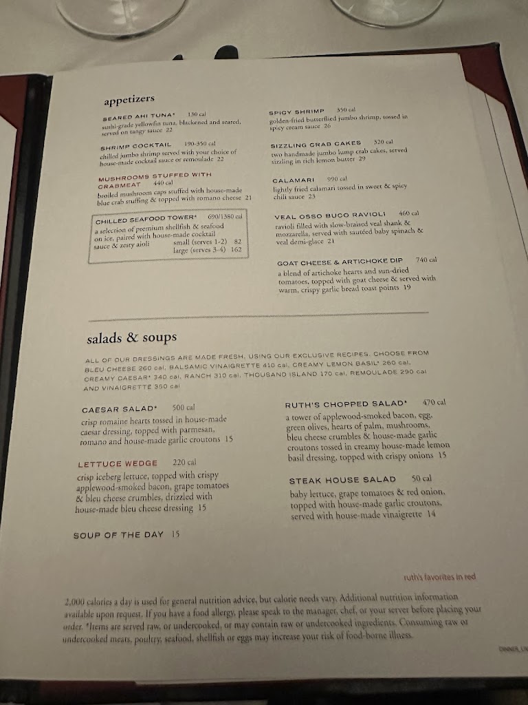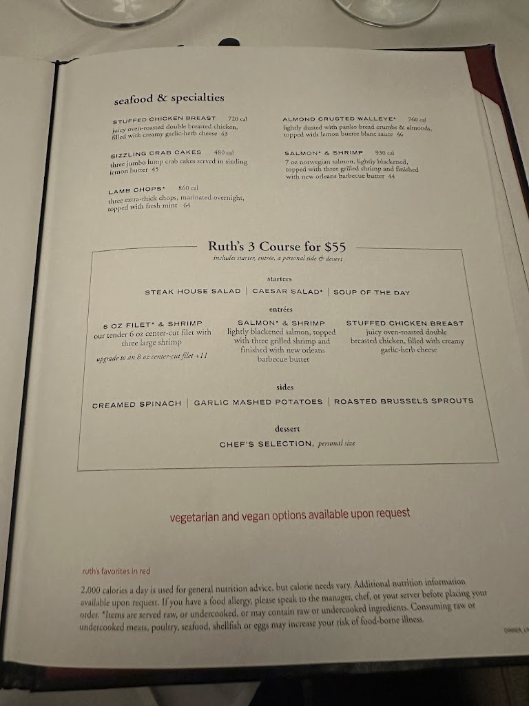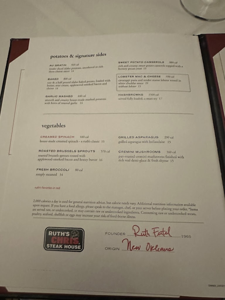 Ruth’s Chris Steak House never disappoints. From the moment we walked in, the atmosphere was warm, inviting, and elegant—but what truly made the evening stand out was the combination of world-class food and exceptional service.