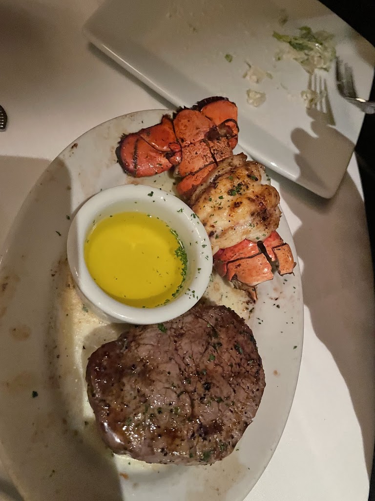 This place has the best food ever. I had the filet, wine and lobster tail. Best food.