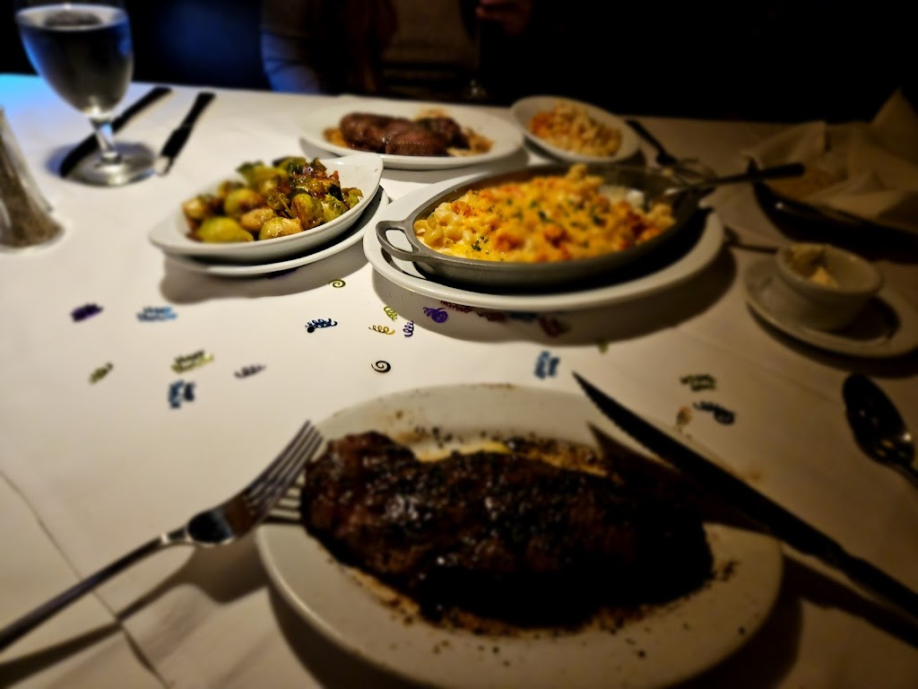 My last review disappeared into the internet somewhere before I finished. So, we were there for our 40th wedding anniversary. My wife's new york strip was excellent. I ordered the ribeye and should have sent it back. It was flavorful and cooked to medium as requested, but the cut of meat was tough and chewy. Not even close to what you expect for $68. Very disappointing. The sides were all very good and they comped a dessert because it was our anniversary. So, a mixed bag to be sure. Next visit will determine if there's a reason to keep going.