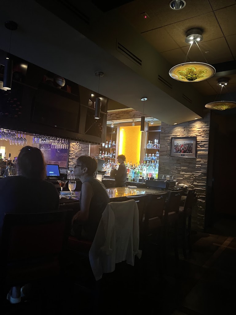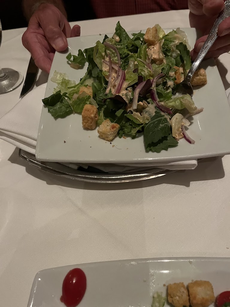 Excellent staff and service. The main server was competent, efficient, and professional. Table runners were timely and quick. Calamari starter was very tasty. My husband enjoyed his steak and I had the stuffed chicken breast. Both very good though it was tough to wait for it to cool down to enjoy. I got the cheesecake. While I generally prefer mine drier or more set, this was an interesting version that was less "set" but very good. The crust was delicious. I could not finish the loaded hash browns for dinner but they where very good reheated the next day.