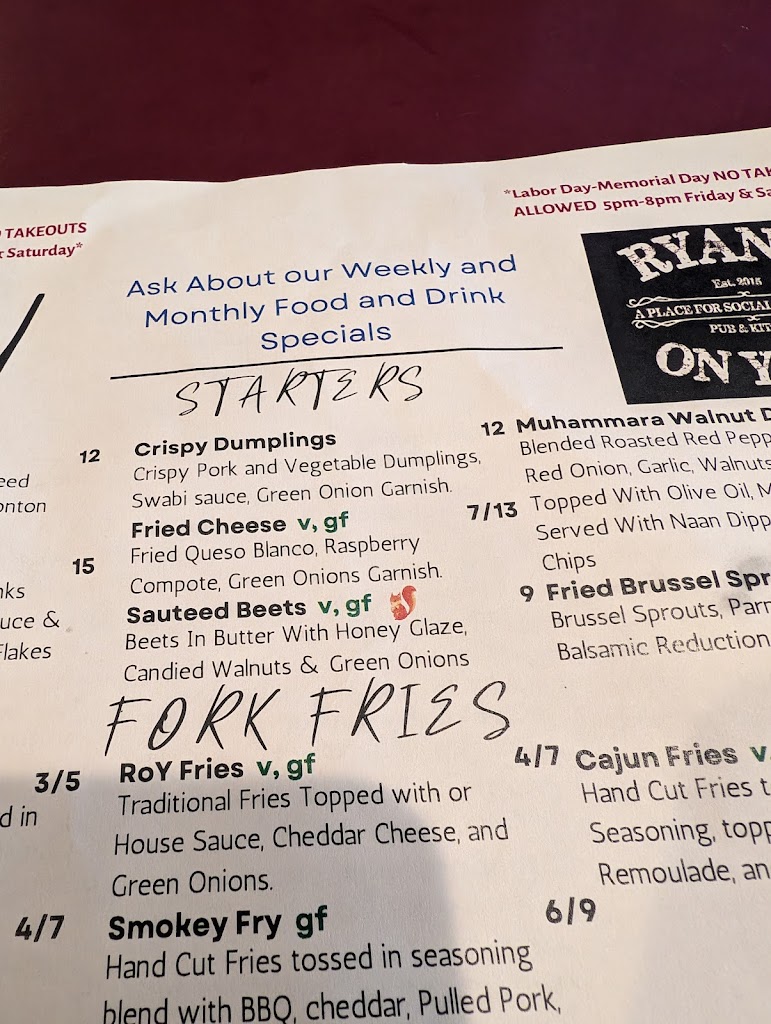 I had the best gyro of my life at Ryan’s today. The sauce was out of this world! Service was outstanding. I hear the Cuban is awesome also. Recommend to anyone who loves trying new flavors. Roasted Brussels sprouts are my favorite veggie now. I will be back! Thank you to the friendly staff!