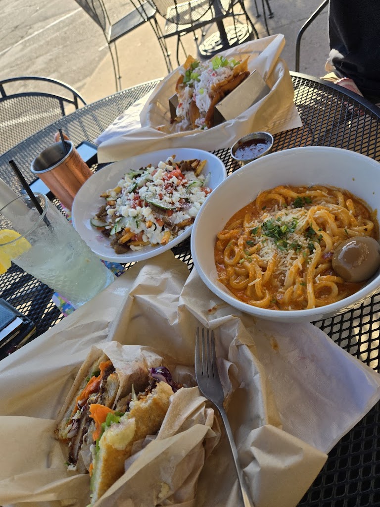 We came just to take some food back to our hotel. The server dude was charismatic and had a fun attitude. Maybe a little unattentive but the food made up for it. We got the the crispy dumplings, gyro and katsu melt. Literally the best take out food we've ever had. Good job with whatever you guys are doing. Chefs kiss