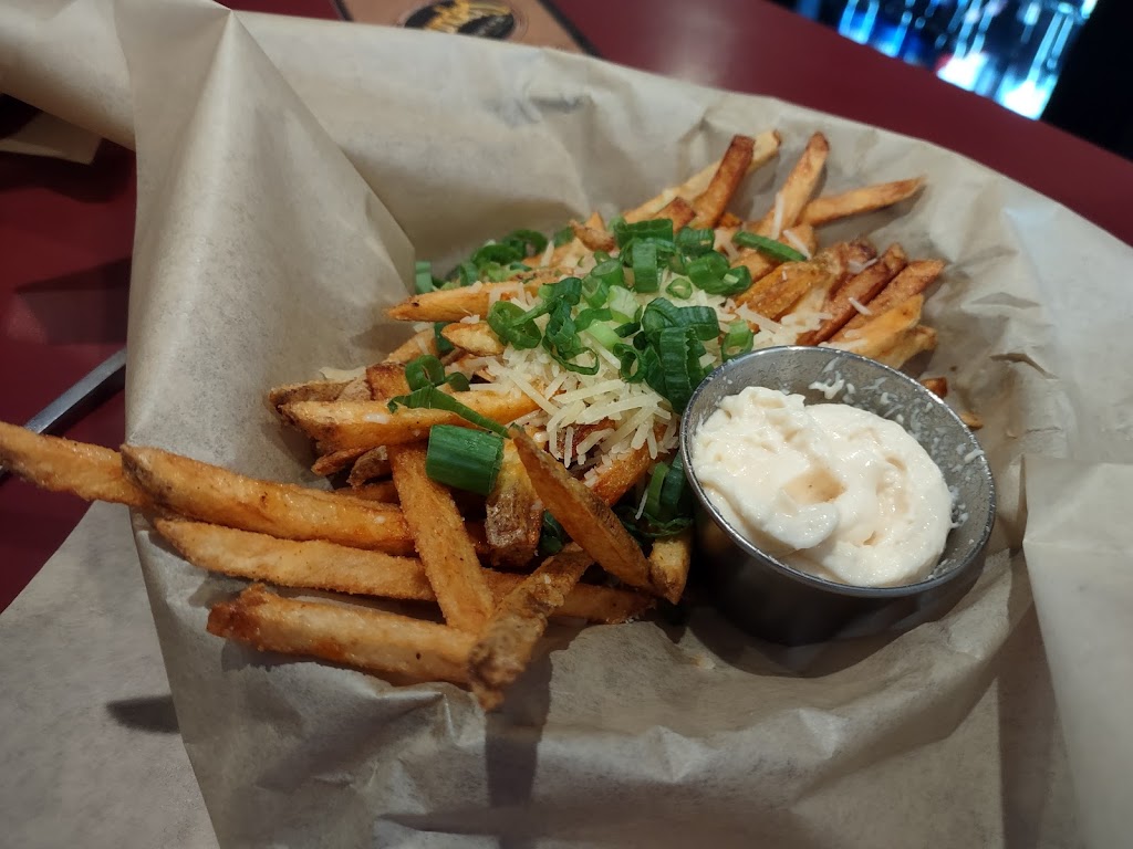 Food tasted great but overpriced. Beware if you want fries with your meal you have to order them separately. Some of the board games were falling apart. The bathroom faucet was a trickle. The atmosphere was upbeat, with a wide variety of music on their playlist. The waitress was friendly and had a nice smile.