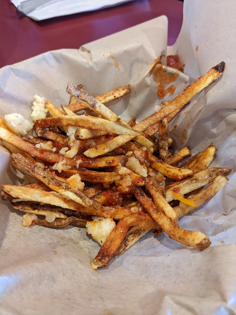 We stopped in to Ryan’s after a recommendation from a friend. A very simple order of 3 burgers and a Poutine special took about 40 minutes to prep. The waitperson would not allow me to order grilled onions on my burger although it was featured on another menu item. That should have been a hint. The Poutine was pretty bland with cheese curds that were cold in the middle. I overheard the table next to us complain about the food delay so the waitperson took their drinks off their bill. The burgers were not very good.
