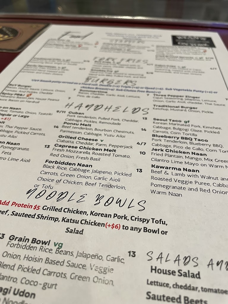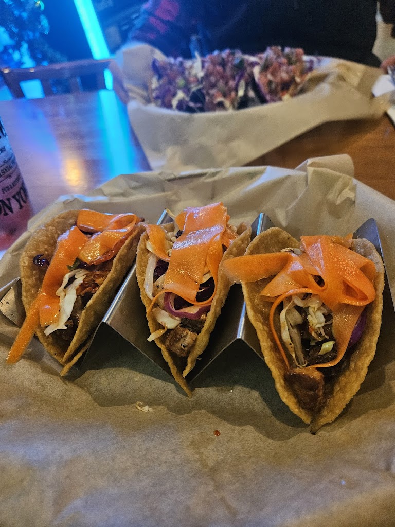 Food was creative, delicious, fresh, and very reasonably priced. Ponzu melt, tofu bites, and Korean tacos were all perfect! Great beer selection, menu, and music too!!