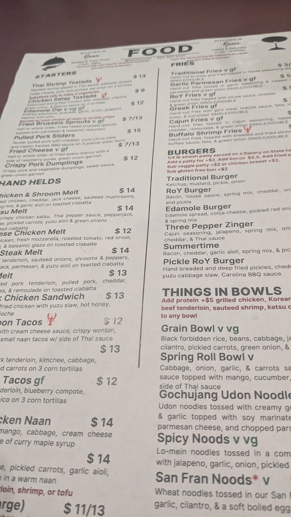 Staff super friendly and truly seemed happy you stopped. Unique menu. A little bland inside, white walls etc. maybe a little paint would make it feel as cool as the menu. Spicy Thai shrimp yummy.