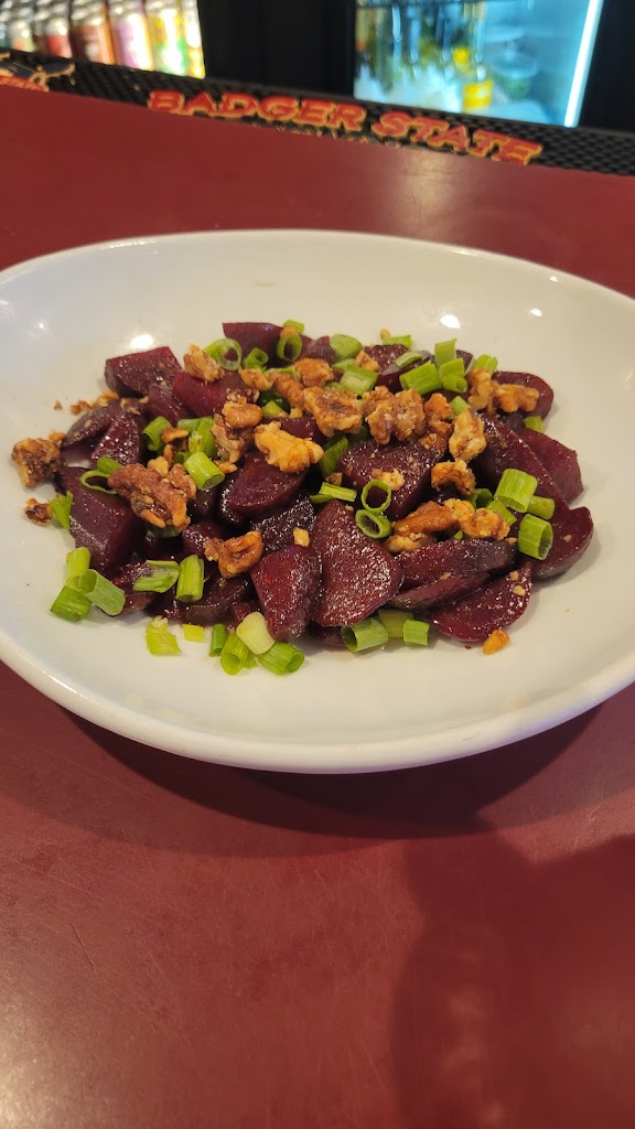 A GEM 💎 of a place with an unbelievable beer list and some very nice mocktails! Shared some apps after the SS Badger voyage. Amazing server doing it all for a large crowd, welcoming and gracious! Had a mocktail each & shared 3 apps: the roasted Brussel Sprouts, Beets with walnuts & green onions, and the Garlic Parm Fries - just perfect! Highly recommend, very easy on the pocketbook at $75 total with hefty tip for 3. Lots of V, GF, & Veg choices.