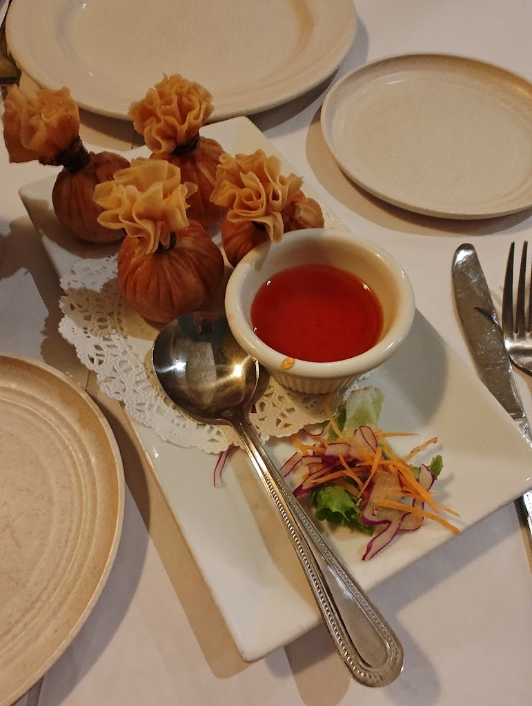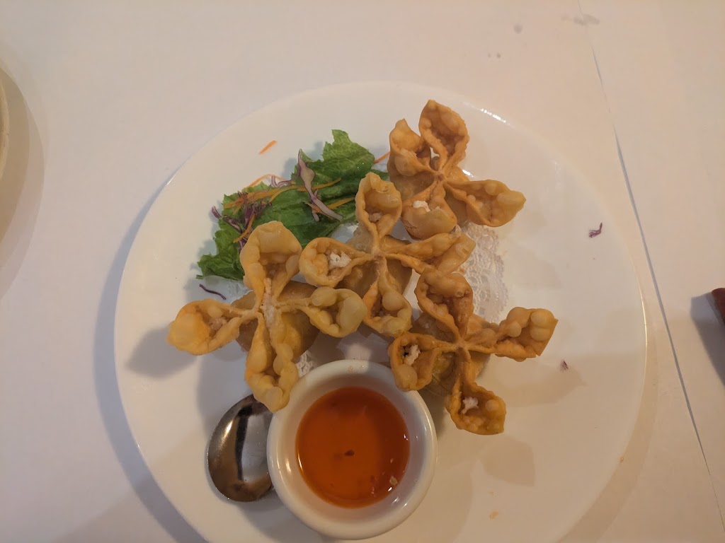 We ordered appetizers (pictured) and they were okay, not great... but my niece ordered larb chicken and it was delivered with a spoon that smelled of mildew so bad that it made all of us gag.