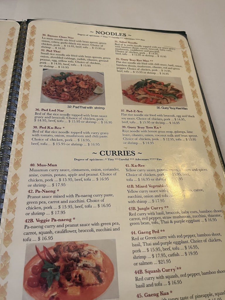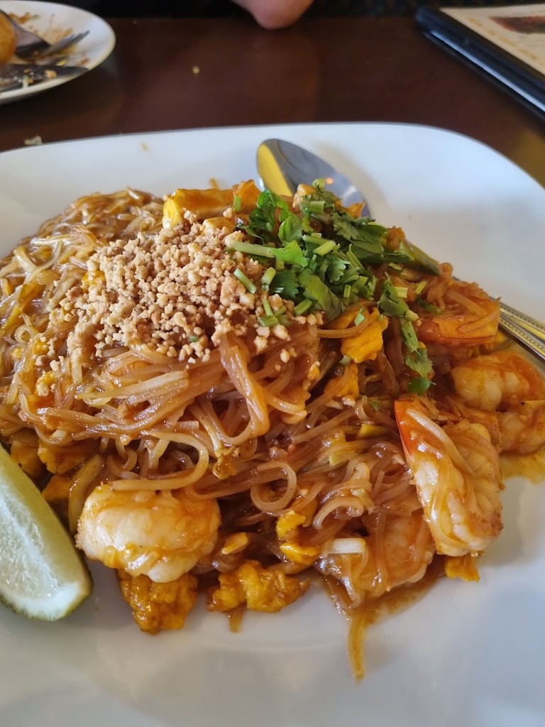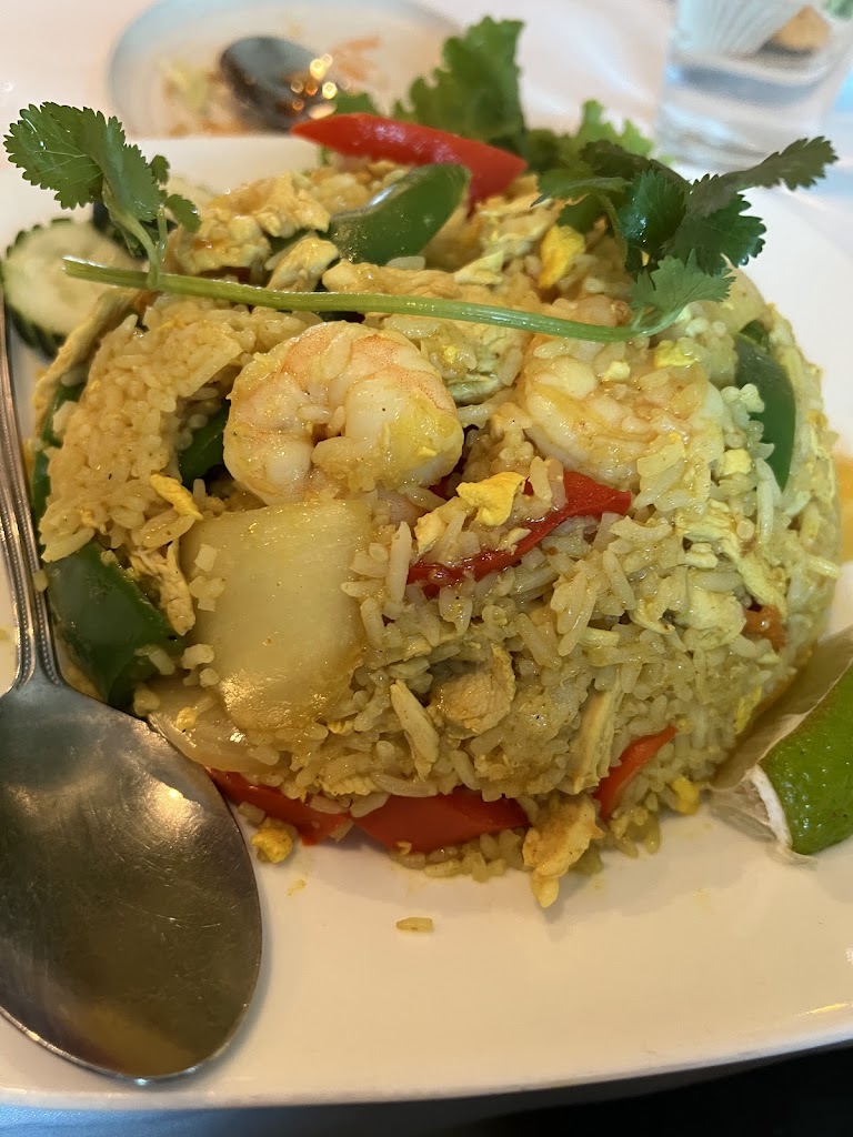 i have only eaten here twice but i love this place! ive gotten the same thing twice, the ka ree curry, and it is so good! the proportions are INSANE. i just ordered some yesterday and i ate some today and i will be eating it tomorrow. they also do not skimp on the shrimp! the place is really cute too and everyone is so kind. i'm stuck on the ka ree curry right now but i can't wait to try something new! their thai tea is my absolute fav as well
