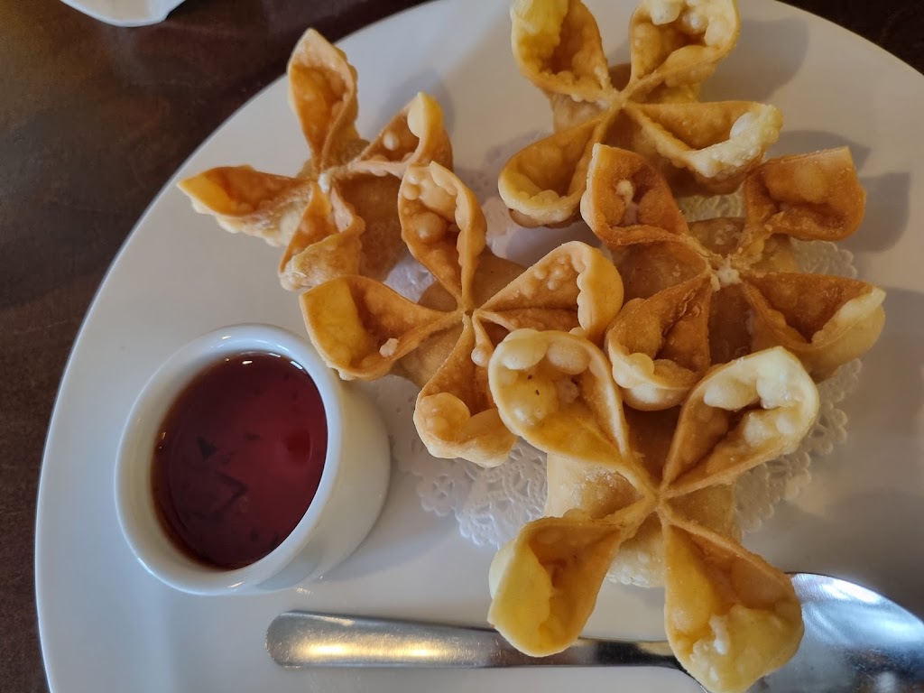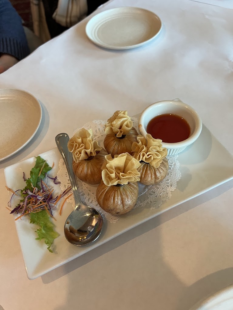 Ordered the shrimp dumplings, that look like shrimp dumplings in the picture all tied up. I was sure they were going to be steamed. They don't use the word fried or crispy, they just say served golden brown. Not a euphemism I was expecting. I also ordered the honey duck. It is supposed to come with basil, peppers, and mushrooms. The mushrooms were omitted. The basil was hardly there and it was covered with a mountain of peppers. Would not come here again.