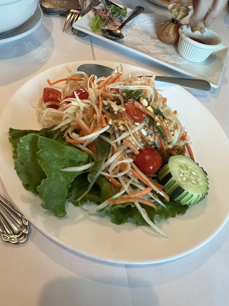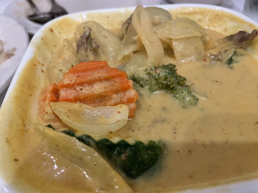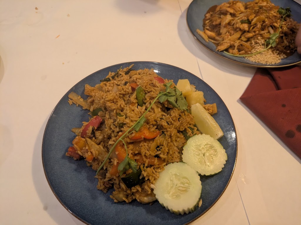 Though we all ordered at the same time, two dishes came out about ~15 minutes before the others, and then the final two took another 5 minutes. The food itself was decent, but nothing to be amazed about. One dish had the wrong kind of protein, and two dishes had stray pieces of protein that were not asked for. At the end of our meal, we asked the waitress if we could have their sticky rice with mango and she looked at us like we were crazy. “Mango is out of season, come back next year” was all she said. It’s a valid response, but she acted like we were ridiculous for even asking.