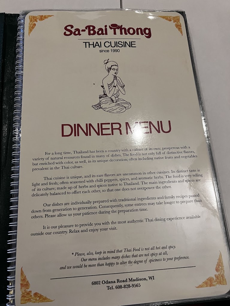 This was the most authentic Thai restaurant that we’ve been to since moving to Madison from Los Angeles. From the moment that you walk in, you can smell the wonderful food cooking. We had a delightful experience with the wait staff and will be back soon to see Jane! I would highly recommend this restaurant and, once again while writing this review, my mouth is watering for the delicious food!!!