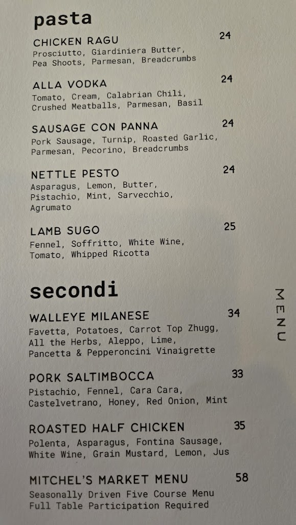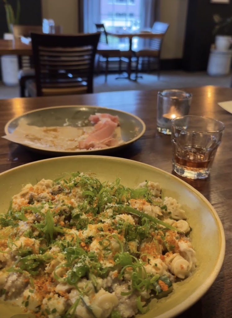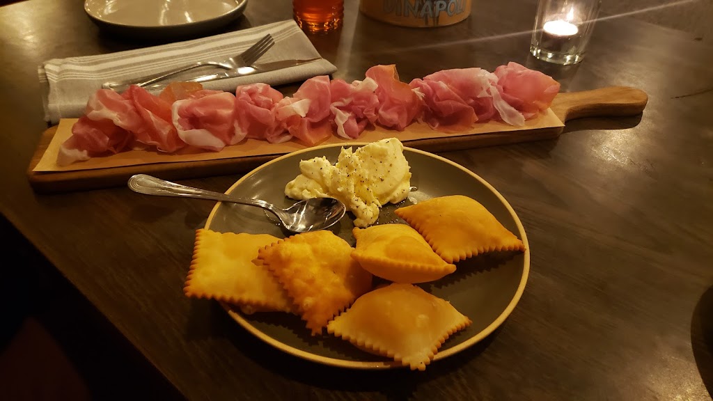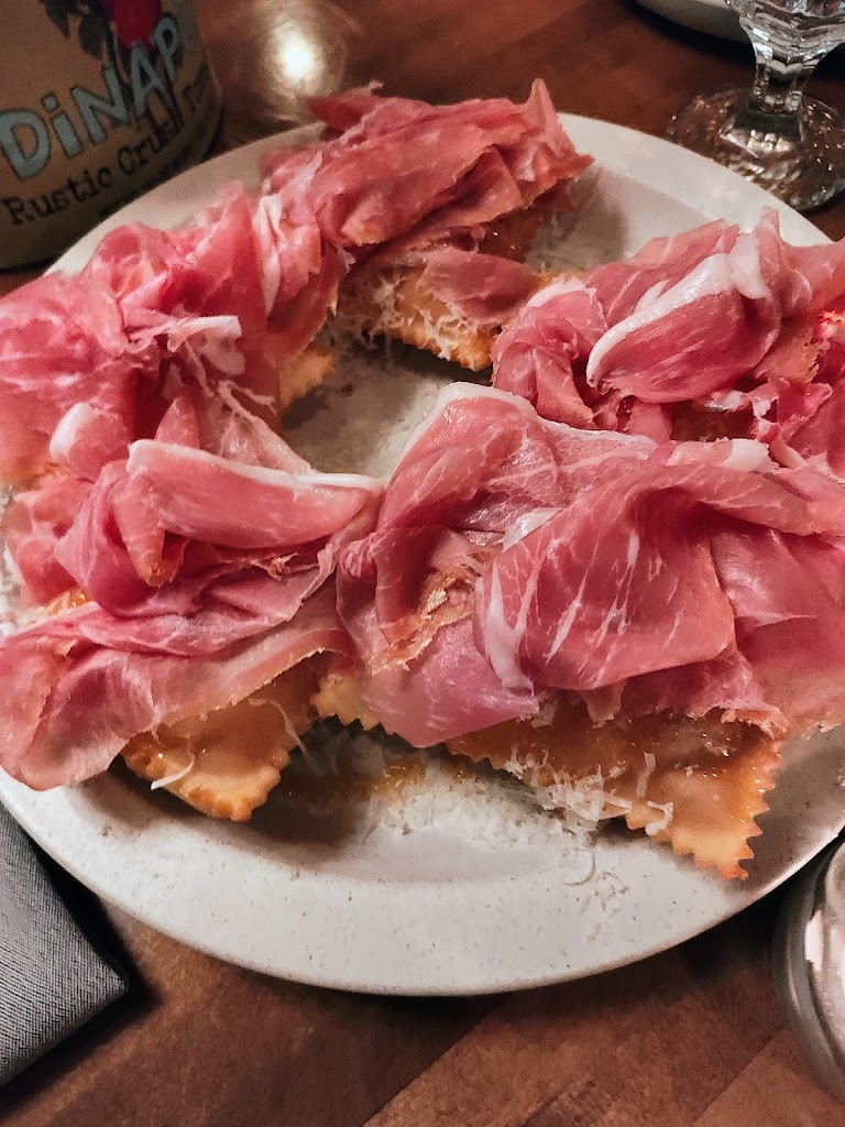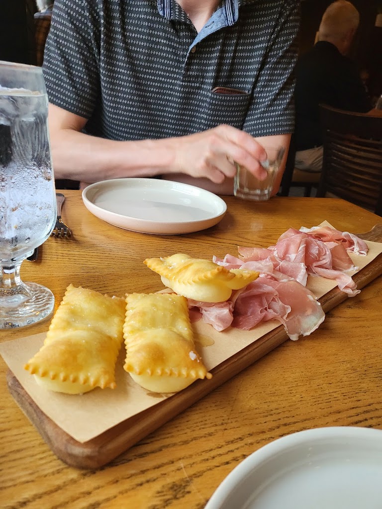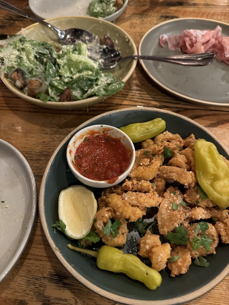I enjoyed every part of this meal. We had a reservation at 7:30, arrived about 25 minutes early and were seated right away. Our server was friendly, attentive but not overwhelming. He timed putting our orders in very well so our food wasn’t on top of each other. We were there for almost an hour and a half just enjoying our food and never felt rushed. It was nice to be on Italian time and enjoy the meal. We started with an appetizer and a salad. Both fresh and full of flavor. Then we each ordered a pasta dish. I love that the menu changes with the season and that they use local ingredients. The restaurant is on the upstairs of Piggy’s and is fairly small, which makes it feel more intimate. You don’t need to be super dressed up as it felt “fancy” but casual. They chef would come out and cut fresh prosciutto for one of the dishes throughout the night on one of the tables; it was fun to watch throughout the meal. We ended our night with a lemongrass gelato. Overall a really delicious meal for a good price. We were able to take home leftovers. Entrance is through Piggy’s and upstairs to the right via stairs or elevator.