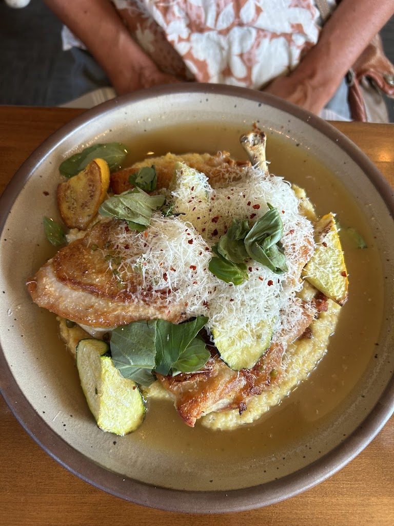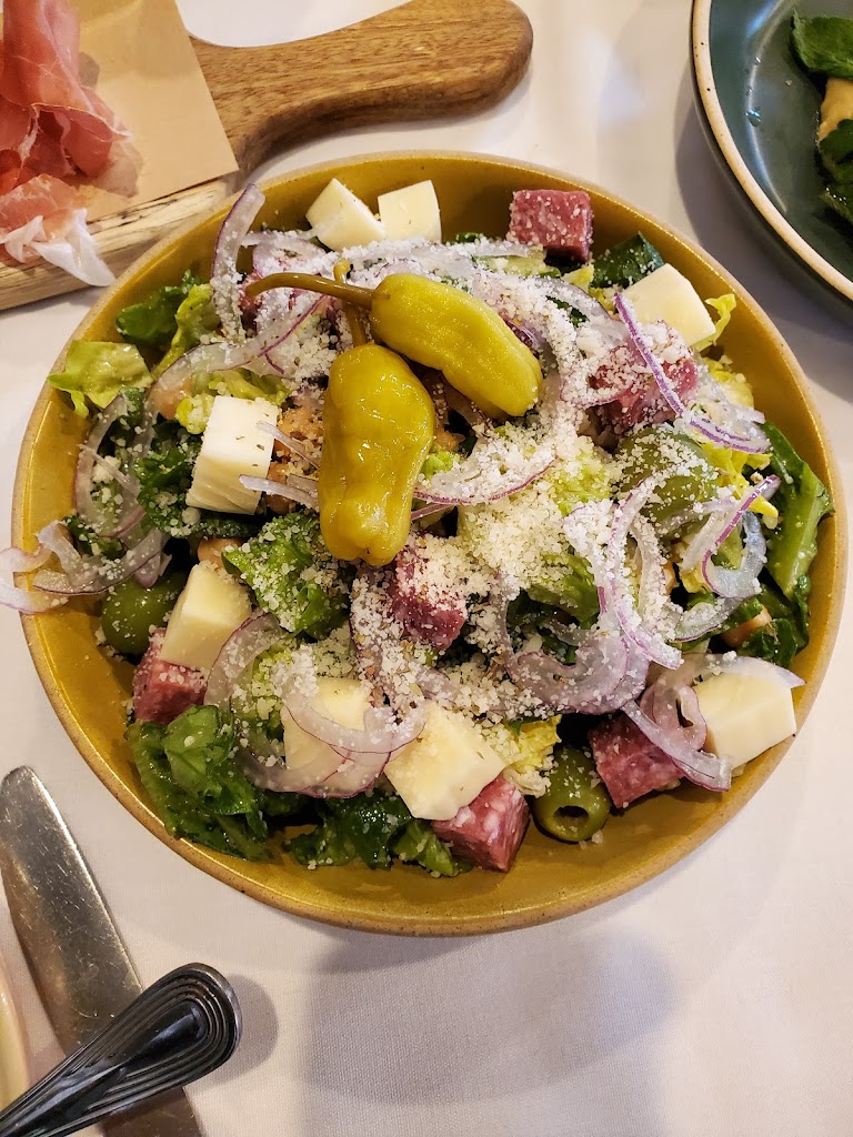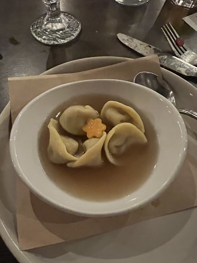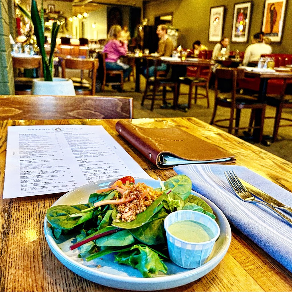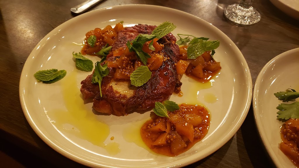 I enjoyed every part of this meal. We had a reservation at 7:30, arrived about 25 minutes early and were seated right away. Our server was friendly, attentive but not overwhelming. He timed putting our orders in very well so our food wasn’t on top of each other. We were there for almost an hour and a half just enjoying our food and never felt rushed. It was nice to be on Italian time and enjoy the meal. We started with an appetizer and a salad. Both fresh and full of flavor. Then we each ordered a pasta dish. I love that the menu changes with the season and that they use local ingredients. The restaurant is on the upstairs of Piggy’s and is fairly small, which makes it feel more intimate. You don’t need to be super dressed up as it felt “fancy” but casual. They chef would come out and cut fresh prosciutto for one of the dishes throughout the night on one of the tables; it was fun to watch throughout the meal. We ended our night with a lemongrass gelato. Overall a really delicious meal for a good price. We were able to take home leftovers. Entrance is through Piggy’s and upstairs to the right via stairs or elevator.