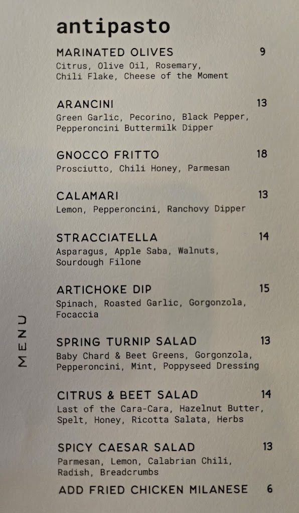 It was meatball Monday when we went and the meatballs were awesome. Also really enjoyed the whipped ricotta, Bianco pasta, and the amazing caramel tiramisu. Fantastic meal overall.